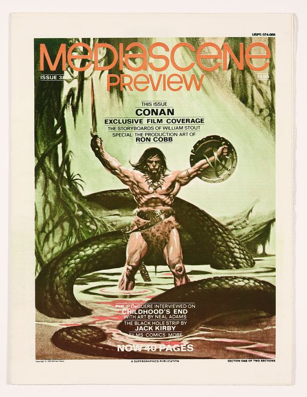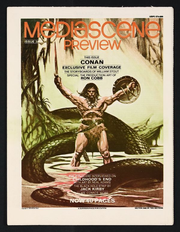 Published Aug 1979 by Supergraphics.$59.00Jim Steranko's fine zine covering popular entertainment. Tabloid newspaper format (all issues come folded) but on good quality white paper stock. Conan film interviews with William Stout and Ron Cobb; Jack Kirby; Childhood's End art by Neal Adams; and more. Cover price $1.95.