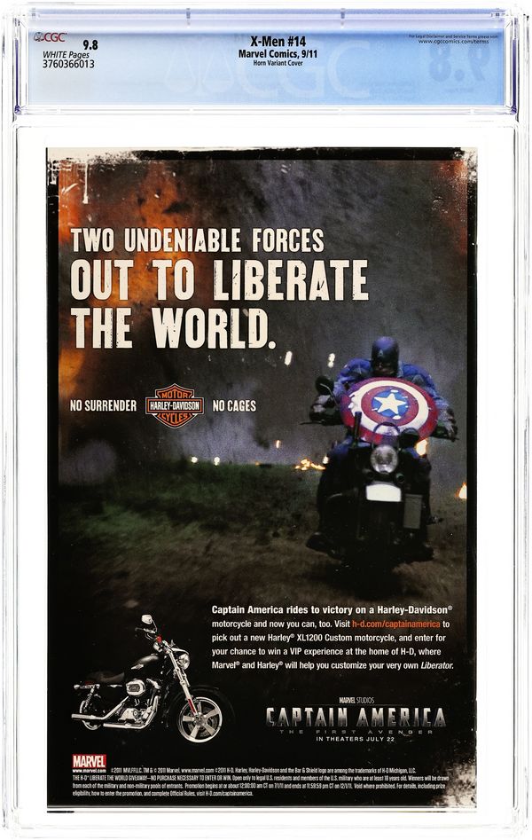 Limited 1 for 20 I AM CAPTAIN AMERICA VARIANT BY Greg Horn First to Last: Part 4 of 5 - Written by CHRISTOPHER YOST Penciled by PACO MEDINA & DALIBOR TALIJIC 'FIRST TO LAST'-The battle fought in two time-periods comes to a climactic conclusion! The X-Men are the only thing that stand between the Evolutionaries and the complete annihilation of the human race. On top of that, learn secrets of Emma Frost's past and what she had to do with the original Brotherhood of Evil Mutants. 32 PGS.(each) /Rated T+ Cover price $3.99.