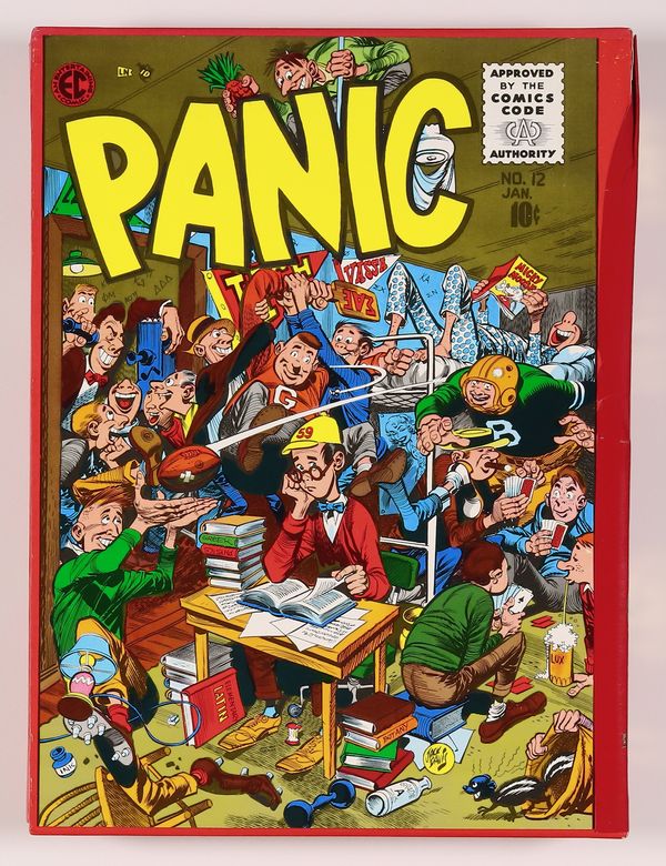 Includes Volume 1-2 (with Slipcase) - 1st prinitng. Collects Panic (1954-1955 EC) #1-12. Tales of humor, both light and dark, from the Golden Age of Comics. Featuring stories by Jack Davis, Joe Orlando, Jack Kamen, Bill Elder, and Wally Wood. Hardcover (2 Volumes with Slipcase), 9-in. x 12-in., 384 pages, B&W. No Cover Price.