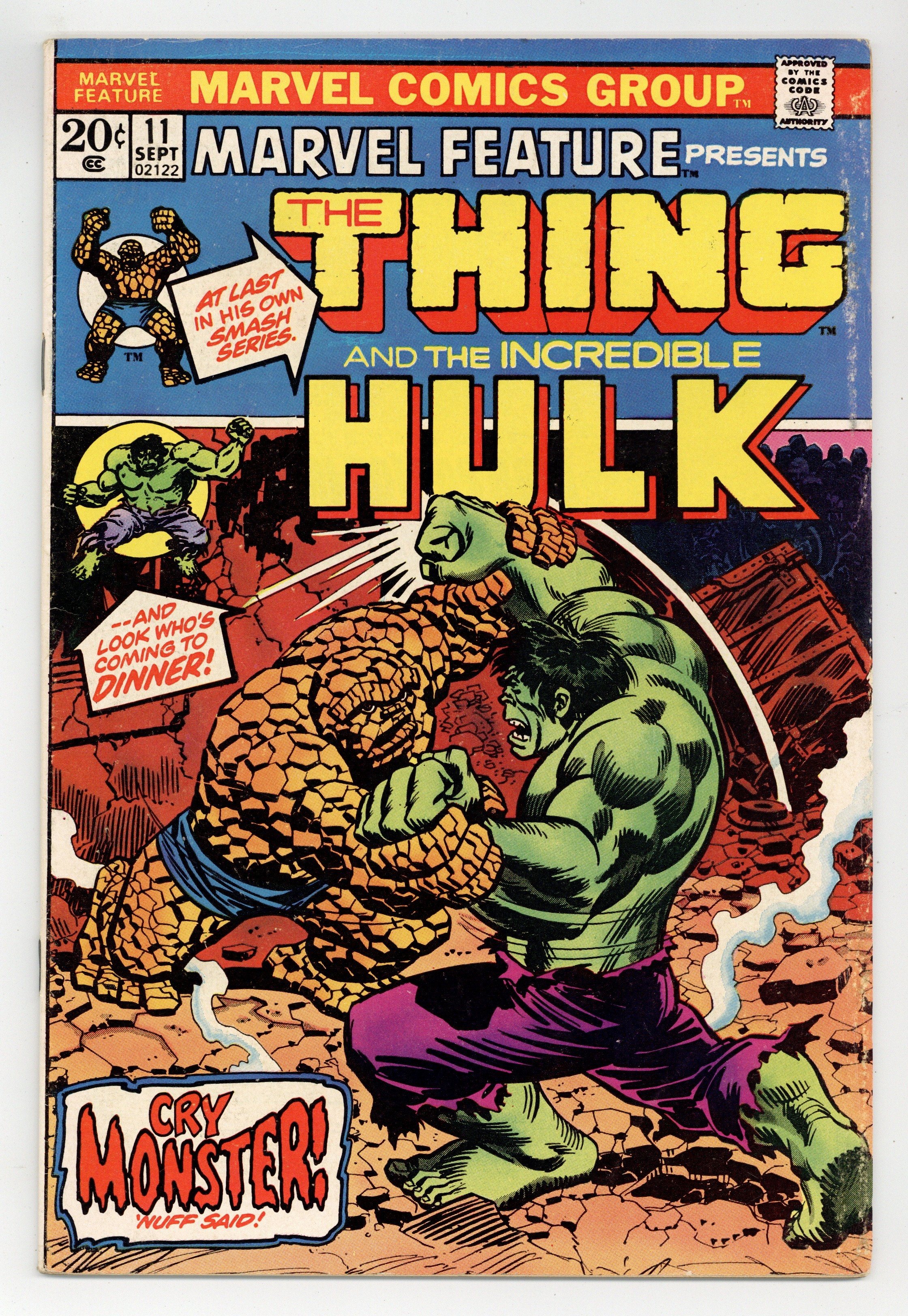 Mark Jeweler Advertisement Insert Variant.Jim Starlin art. Fantastic Four appearance. Thing vs. Hulk. 1st solo Thing book. Origin of the Fantastic Four retold. Cover price $0.20. Cover price $0.20.