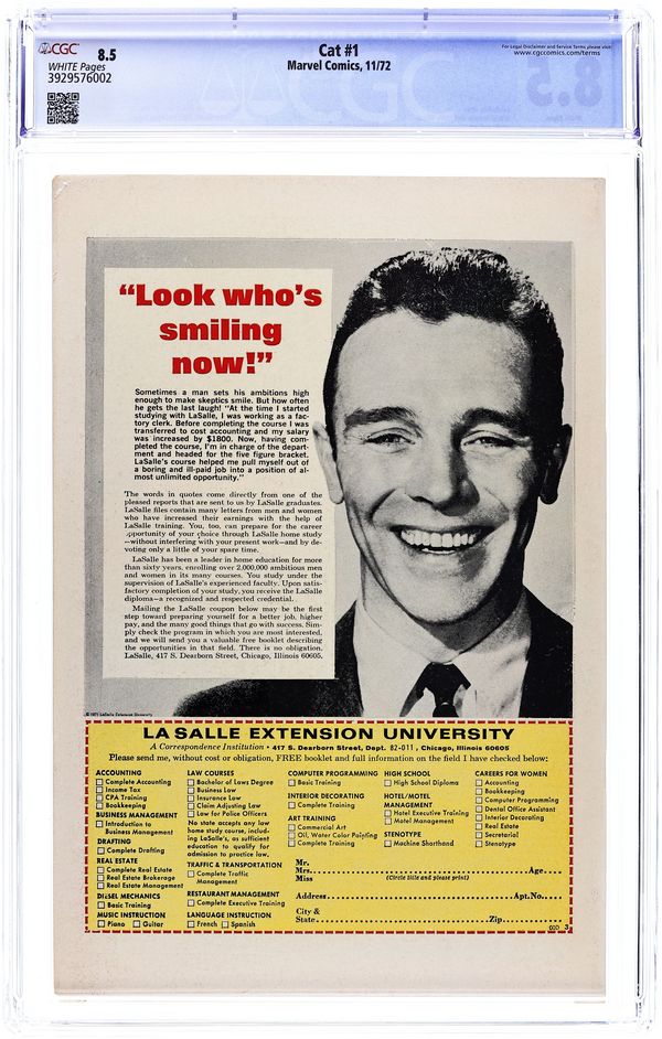 Mark Jeweler Advertisement Insert Variant. "Beware the Claws of the Cat!" Script by Linda Fite, pencils by Marie Severin, inks by Wally Wood. Wood cover (Severin pencils?). Cover price $0.20. Cover price $0.20.