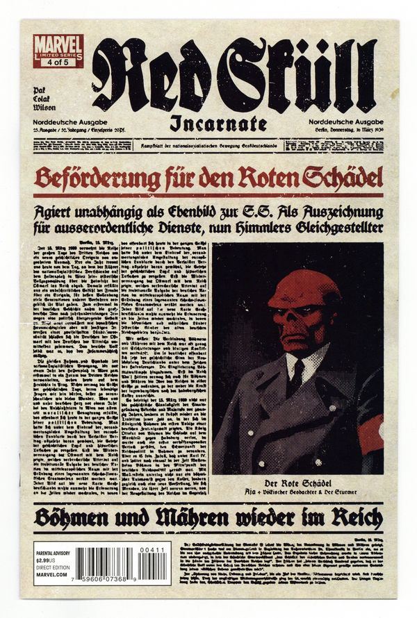 $11.25Written by GREG PAK Art by MIRKO COLAK Cover by DAVID AJA The life of Johann Schmidt has been a tragic, tortuous road. As his destiny and doom drag the future Red Skull to his inevitable crossroads, Johann plots a shocking assassination...one that could change the course of history... By the acclaimed writer of MAGNETO: TESTAMENT, Greg Pak, and the breakout SECRET WARRIORS artist, Mirko Colak 32 PGS./Parental Advisory Cover price $2.99.