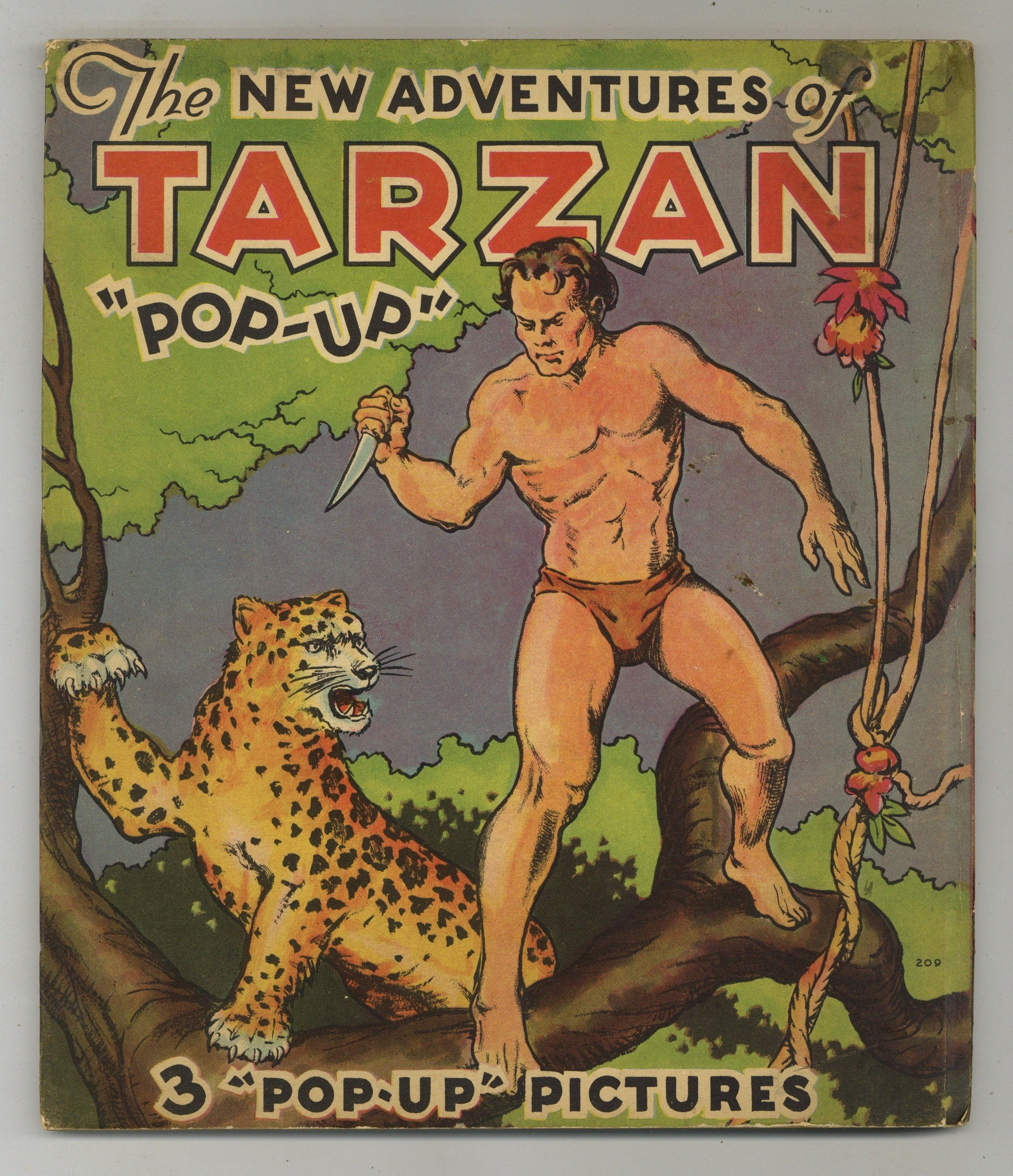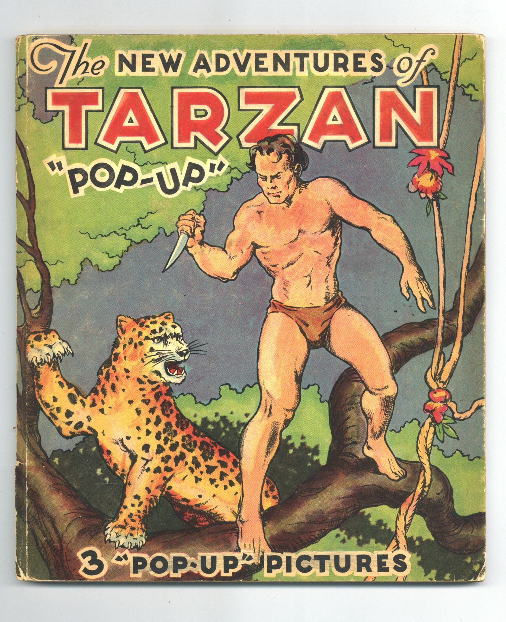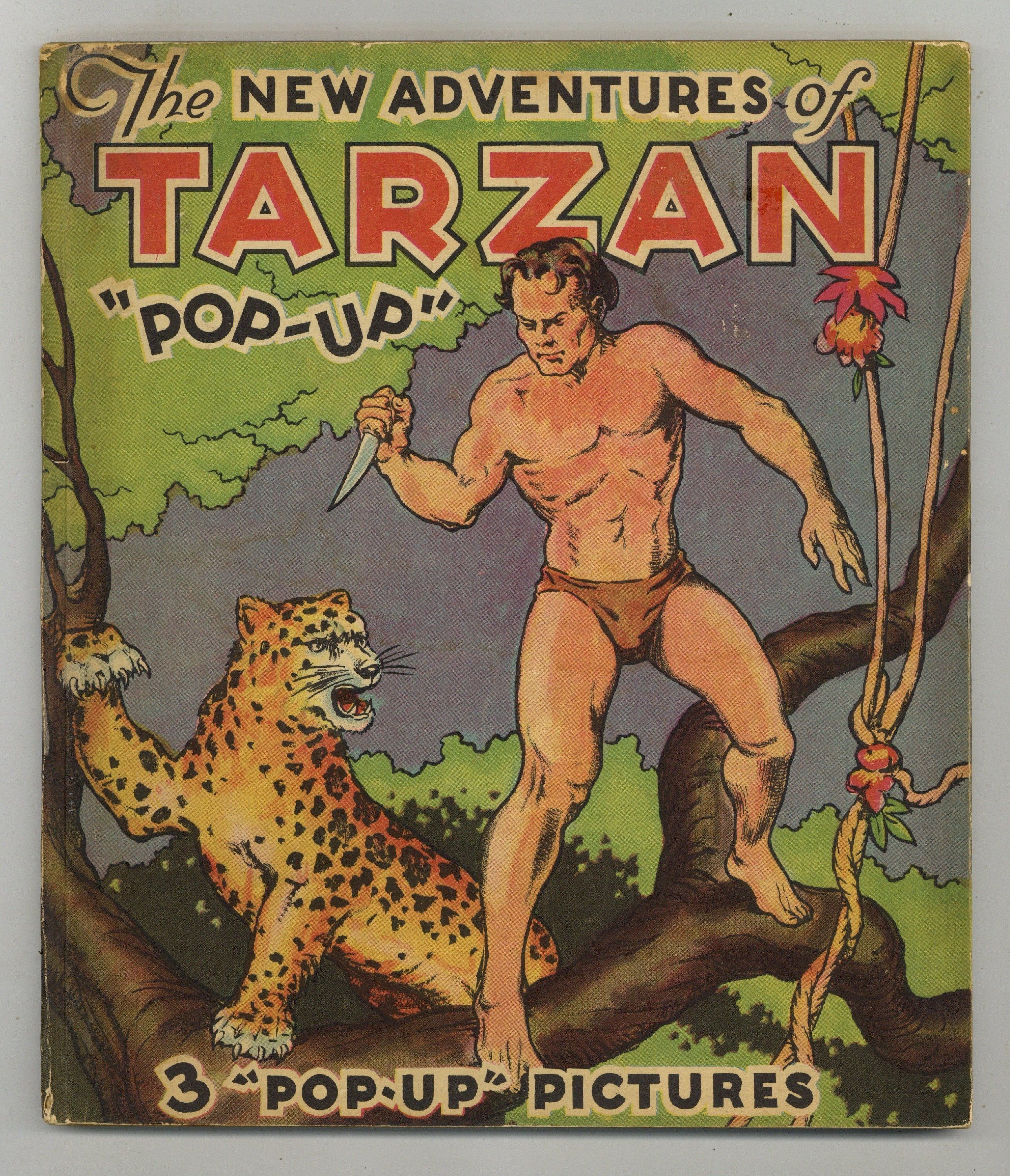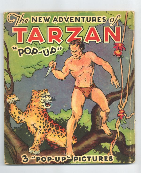 The New Adventures of Tarzan Pop-Up book by Edgar Rice Burroughs. Includes a prose story with B&W illustrations and 3 double-page pop-up pages in full color! Hardcover, 8-in. x 9-in., 24 pages, PC/PB&W.