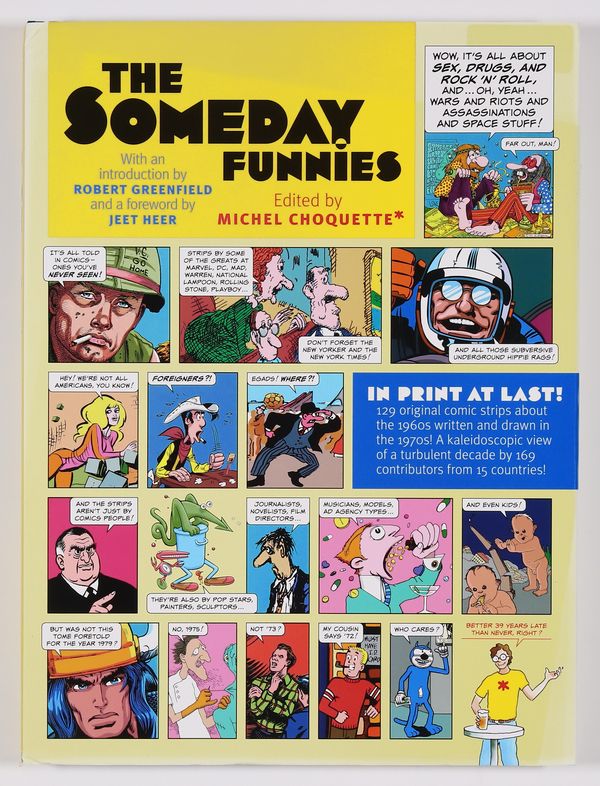 1st printing. Edited by Michel Choquette. The Someday Funnies is the long-awaited collection of comic strips created in the early 1970s by world-famous artists and writers such as C. C. Beck, René Goscinny, Harvey Kurtzman, Jack Kirby, Moebius, Art Spiegelman, and Gahan Wilson. What started out as a special insert for Rolling Stone took on a life of its own as writer/editor Michel Choquette traveled the world, commissioning this visual chronicle of the 1960s, only to find himself without a publishing partner or the financial support to continue. Forty years later, readers finally get to experience this legendary anthology as Choquette celebrates the birth, death, and resurrection of The Someday Funnies - 129 previously unpublished strips by 169 writers and artists. hardcover, 12-in. x 16-in., 216 pages, full color. Cover price $55.00.