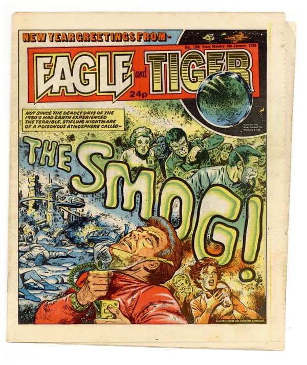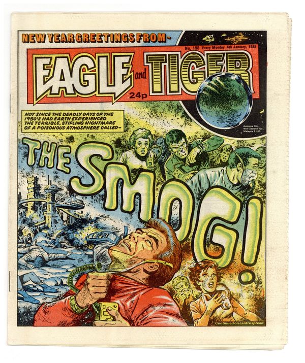 Published Jan 1986 by IPC Magazines.$6.60Anthology featuring serialized stories: Doomlord, Billy's Boots, Star Rider, S.O.S. (Special Operations Squad), Dan Dare (in color), Death Wish, The Computer Warrior, The Thirteenth Floor, and Shadow. 9.25-in. x 11-in.; black and white with a couple pages of color; 32 newsprint pages.