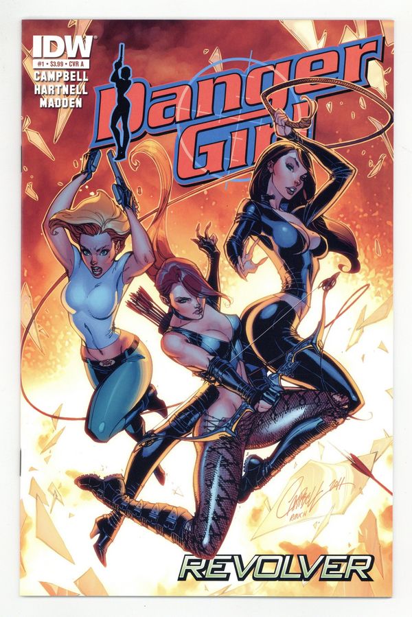 Published Jan 2012 by IDW Publishing.$15.00Cover A by J. Scott Campbell. Andy Hartnell (w) o Chris Madden (a) o J. Scott Campbell, Madden (c) For the first time ever, creators J. Scott Campbell and Andy Hartnell introduce a new Danger Girl to the team! Who is she? What are her skills? Where is she from? What are her measurements? You'll find those answers and more as she joins the world's sexiest spy agency in their most explosive adventure yet! And not only that, but we also up the action and thrills by welcoming soon-to-be-superstar, artist Chris Madden to his first-ever Danger Girl epic! Consider yourself debriefed! Cover price $3.99.