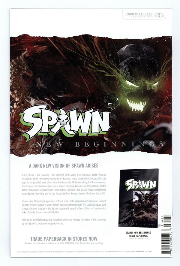 $192.00Cover by TODD MCFARLANE story WILL CARLTON art SZYMON KUDRANSKI & TODD MCFARLANE 'THE GATHERING STORM,' Part Four Who is Jim Downing? Or, more importantly, who WAS Jim Downing? Very powerful people have worked very hard to keep Jim, and the world, in the dark about who he really is. Old truths are set to be revealed as the first pieces of the newest Hellspawn's mysterious past begin to fall into place, following last issue's shocking cliffhanger. Cover price $2.99.