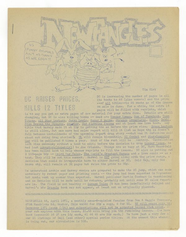 Published Apr 1971 by Don and Maggie Thompson.$13.00News zine published by Don and Maggie Thompson. Circulation 535. Cover price $0.20.