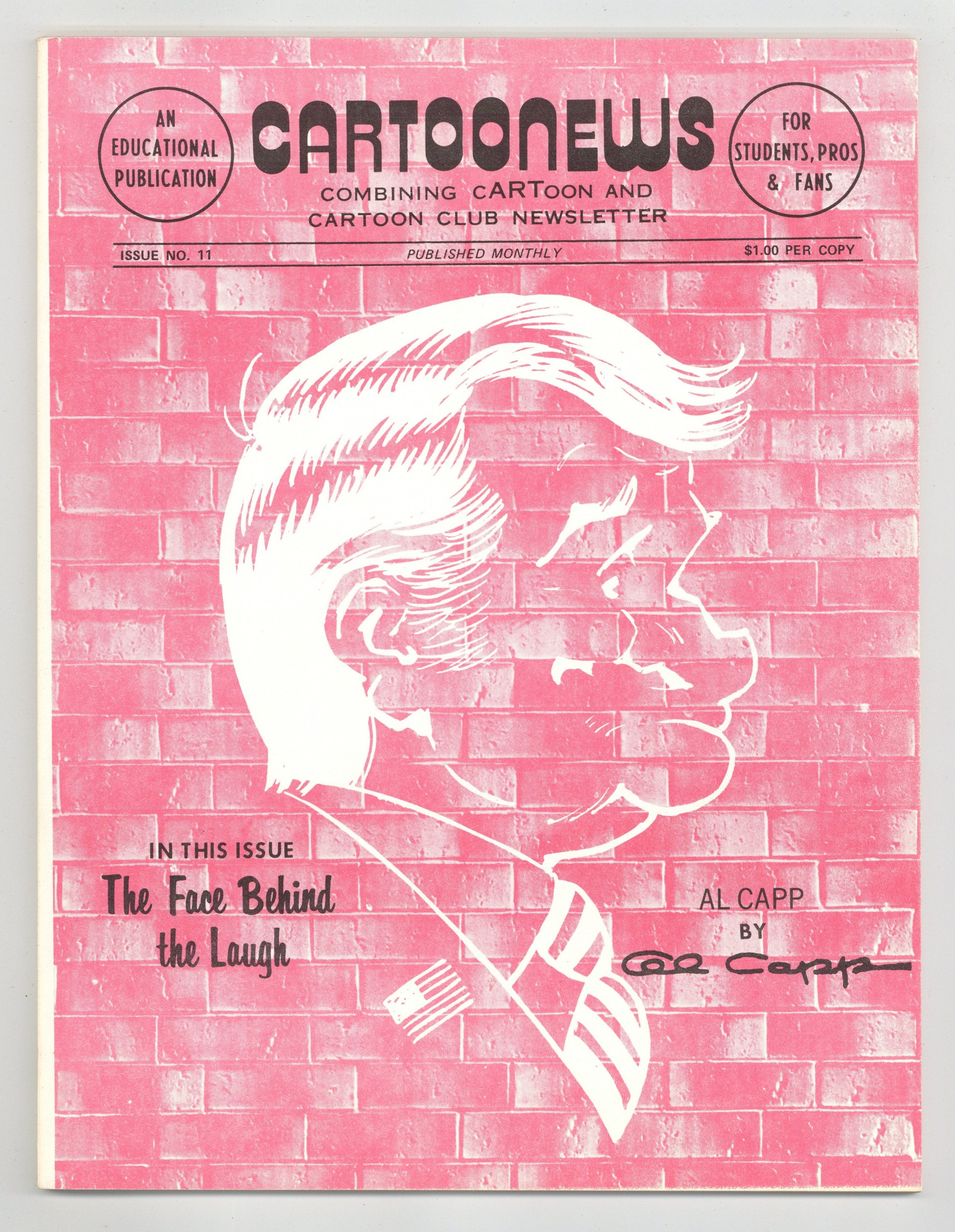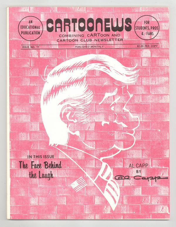 News and features about comic strips and cartoons. In this issue: Al Capp, Morrie Turner, Joe Kubert's cartoon school, Shel Dorf, C.W. Kahles, and more. 8.5-in. x 11-in.; black and white; 48 pages on white paper. Cover price $1.00.