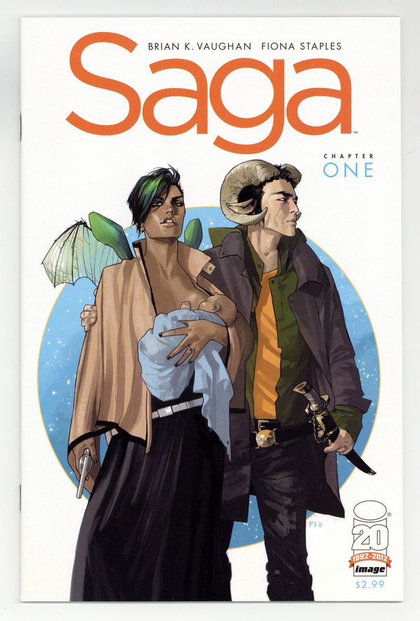 (W) Brian K. Vaughan (A/CA) Fiona Staples Y: THE LAST MAN writer BRIAN K. VAUGHAN returns to comics with red-hot artist FIONA STAPLES for an all-new ONGOING SERIES! Star Wars-style action collides with Game of Thrones-esque drama in this original sci-fi/fantasy epic for mature readers, as new parents Marko and Alana risk everything to raise their child amidst a never-ending galactic war. The adventure begins in a spectacular DOUBLE-SIZED FIRST ISSUE, with forty-four pages of story with no ads for the regular price of just $2.99! Cover price $2.99.