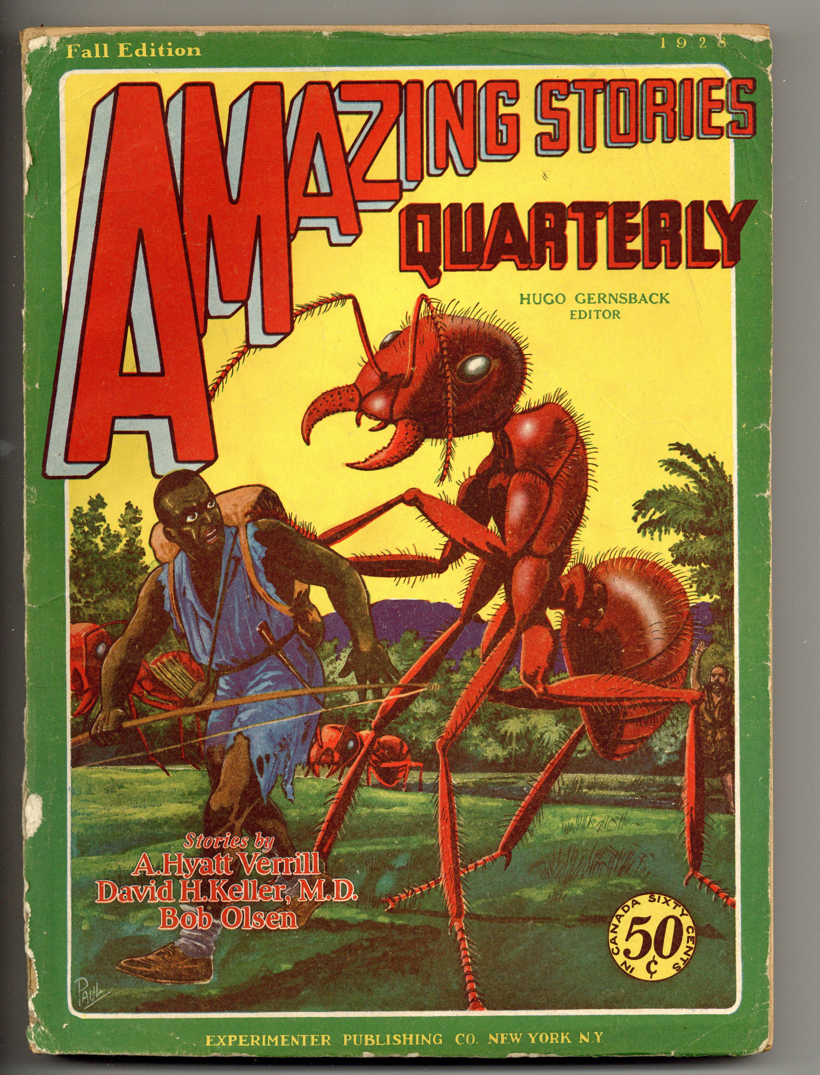 Vol. 1, No. 4 - Fall 1928. Stories by David H. Keller M.D., A. Hyatt Verrill, Bob Olsen, Ronald M. Sherin, and Clelland J. Ball. Illustrations. Edited by Hugo Gernsback. 8.5-in. x 11-in.; black and white with color cover; newsprint interiors. Cover price $0.50.
