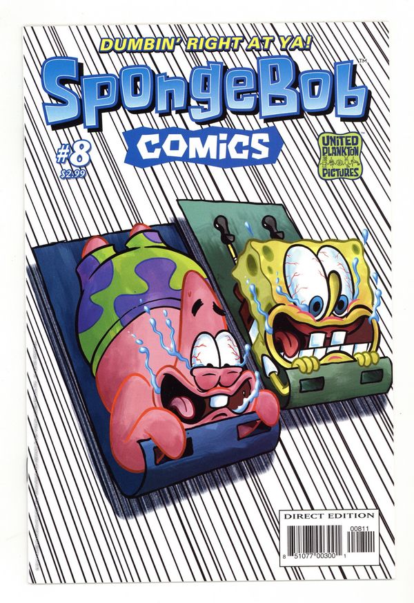 Published Mar 2012 by United Plankton Pictures.$22.00(W) Graham Annable (A) Corey Barba & Various (CA) Vincent DePorter Patrick and SpongeBob's kelp karpet sleds go really fast - and in 'Slip-Sledding Away,' SpongeBob finds a way to make them go even faster! Soon the friends find themselves sledding to a mysterious, faraway retirement community. In 'Recipe For Success,' Plankton finally puts his genius to work and creates a delicious secret formula of his own. Is this the end of The Krusty Krab? All this plus SpongeBob's unique solution to a toothache; a cover pin-up; and more! Cover price $2.99.