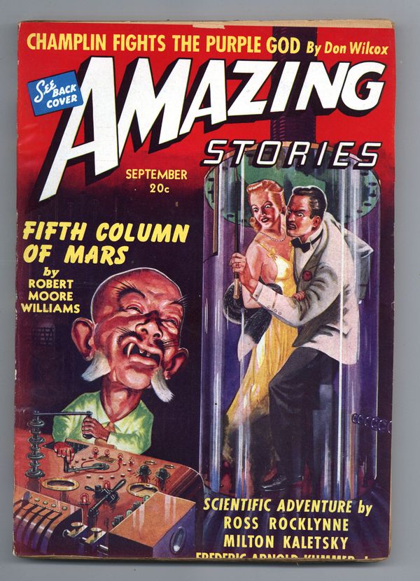 September 1940. Front cover by Robert Fuqua. Back cover by Frank R. Paul. Stories by Robert Moore Williams, Don Wilcox, Ross Rocklynne, Milton Kaletsky, Frederic Arnold Kummer Jr., and Jep Powell. Illustrations by R. Newman, Guy Gilford, Julian S. Krupa, and Fuqua. 7" x 10"; black and white with color cover; 144 newsprint pages. Cover price $0.20.