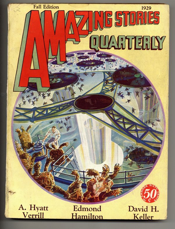 Vol. 2, No. 4 - October (Fall) 1929. Stories by Edmond Hamilton ("The Other Side of the Moon"), David H. Keller, M.D. ("Euthanasia Limited"), A. Hyatt Verrill ("The Bridge of Light"), and Paul Lovering ("When the Earth Grew Cold"). 8-1/2" x 11-1/2", black and white with color cover, 144 pages. Cover price $0.50.