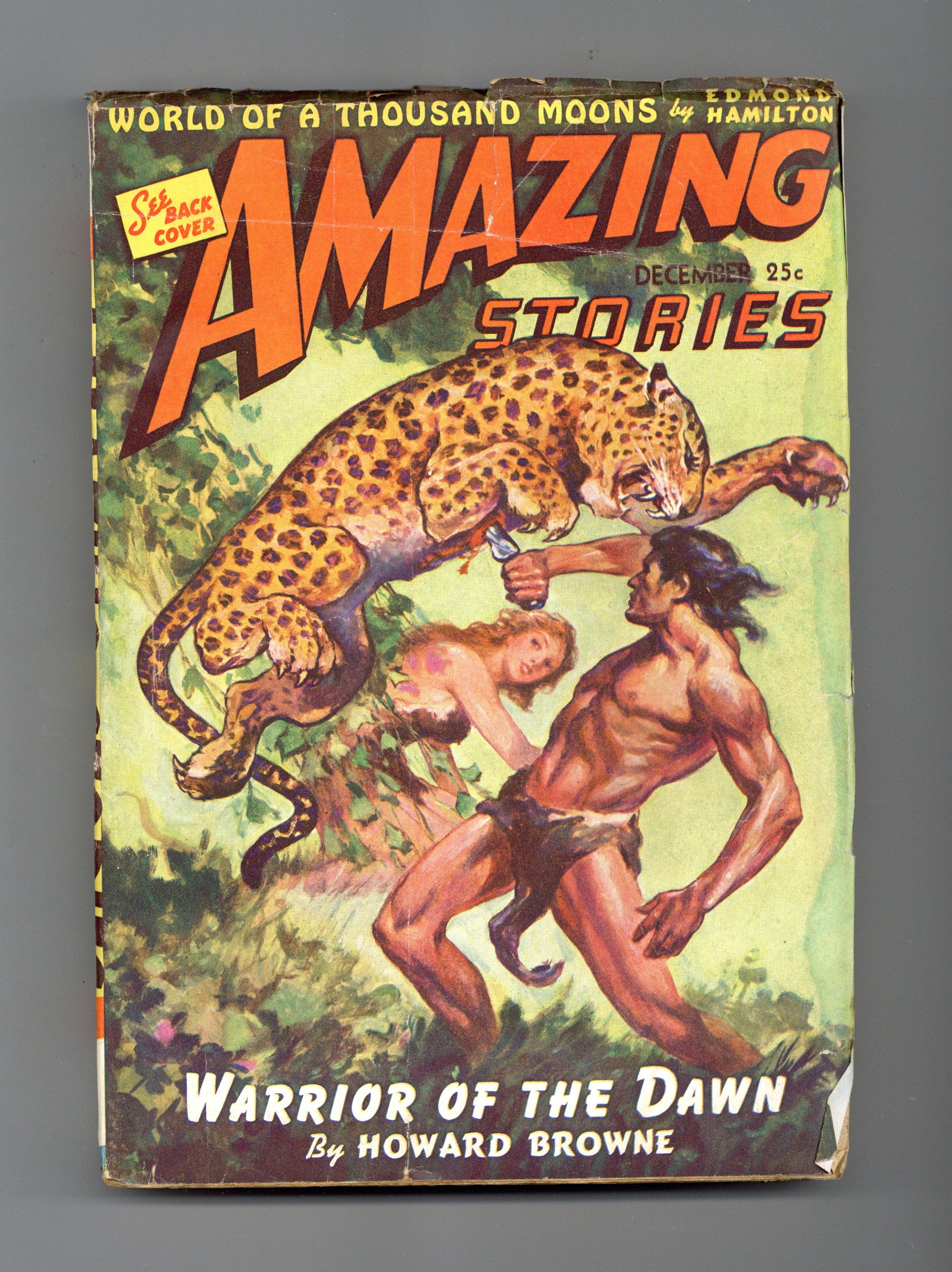 December 1942. Giant Size Issue. Cover by J. Allen St. John. Stories by Howard Browne, Edmond Hamilton, Robert Moore Williams, Leroy Yerxa, Clark South, Chester S. Geier, Dwight V. Swain, and Gerald Vance. Illustrations by J. Allen St. John, Jay Jackson, Ned Hadley, Malcolm Smith, Robert Fuqua, Magarian, and Joe Sewell. 7" x 10"; black and white with color cover; 240 newsprint pages. Cover price $0.25.