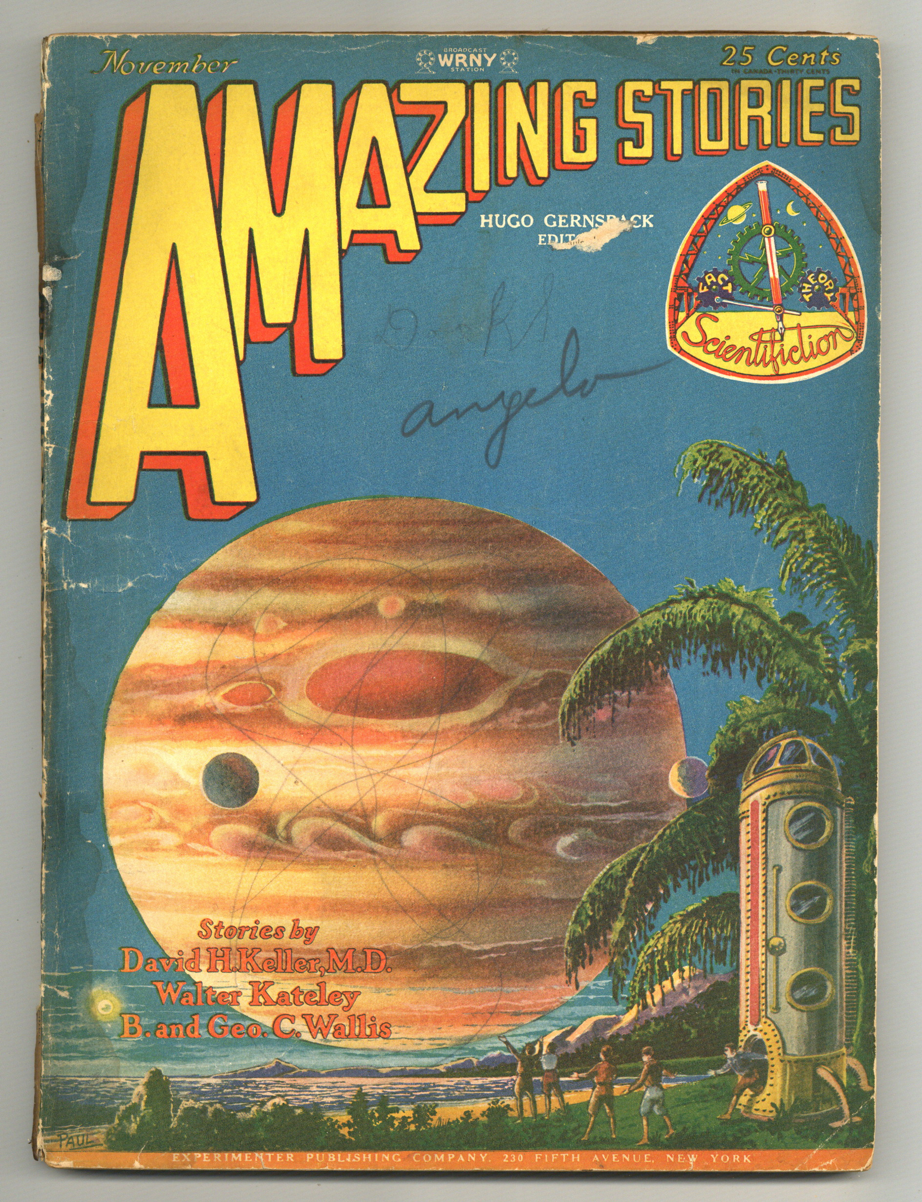 Volume 3, Issue 8 - November, 1928. Cover art by Frank R. Paul, from "The Moon Men" by Frank Brueckel, Jr. Stories by David H. Keller, M.D. ("The Psychophonic Nurse"), Walter Kateley ("The Eye of the Vulture"), B. and Geo. C. Wallis ("The World at Bay"), and many more. Edited by Hugo Gernsback. 8" x 11"; black and white with color cover. Cover price $0.25.