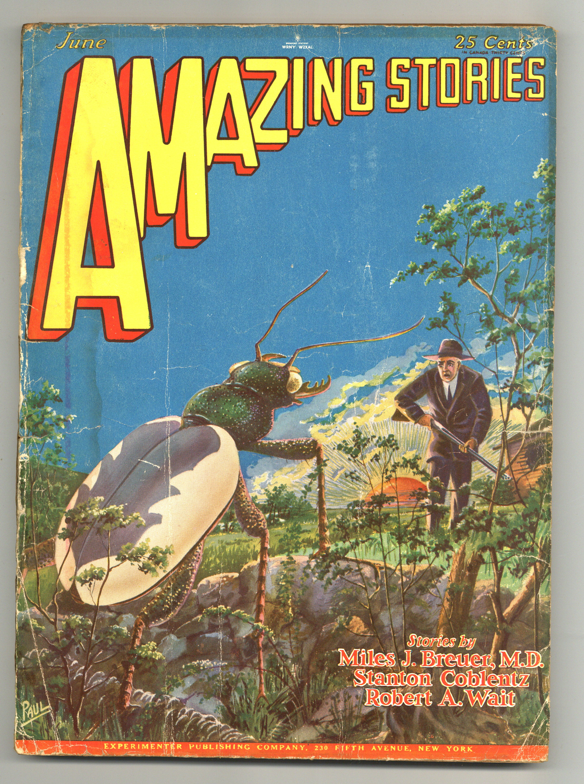 Amazing Stories volume 4 number 3 published in June 1929. Edited by Hugo Gernsback. 8-in. x 11-in.; black and white. Cover price $0.25.