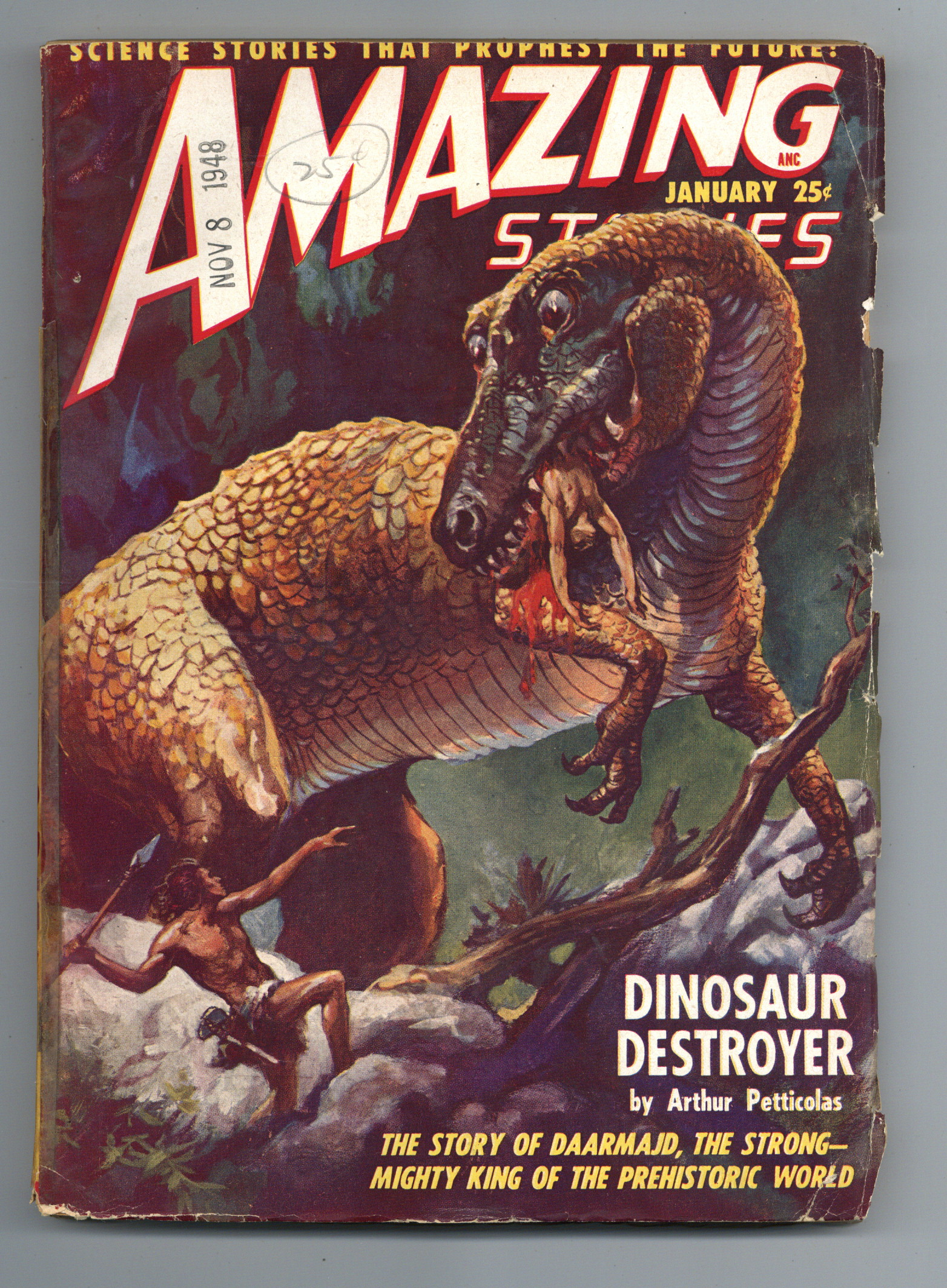 Volume 23, Issue 1 - January, 1949. Cover by J. Allen St. John. Science fiction stories by Arthur Petticolas, John Stuart Walworth, Peter Worth, Chester Smith, and August Meissner. Illustrations by St. John, Malcolm Smith, Julian S. Krupa, and Bill Terry. 7" x 10"; black and white with color cover; 158 newsprint pages. Cover price $0.25.