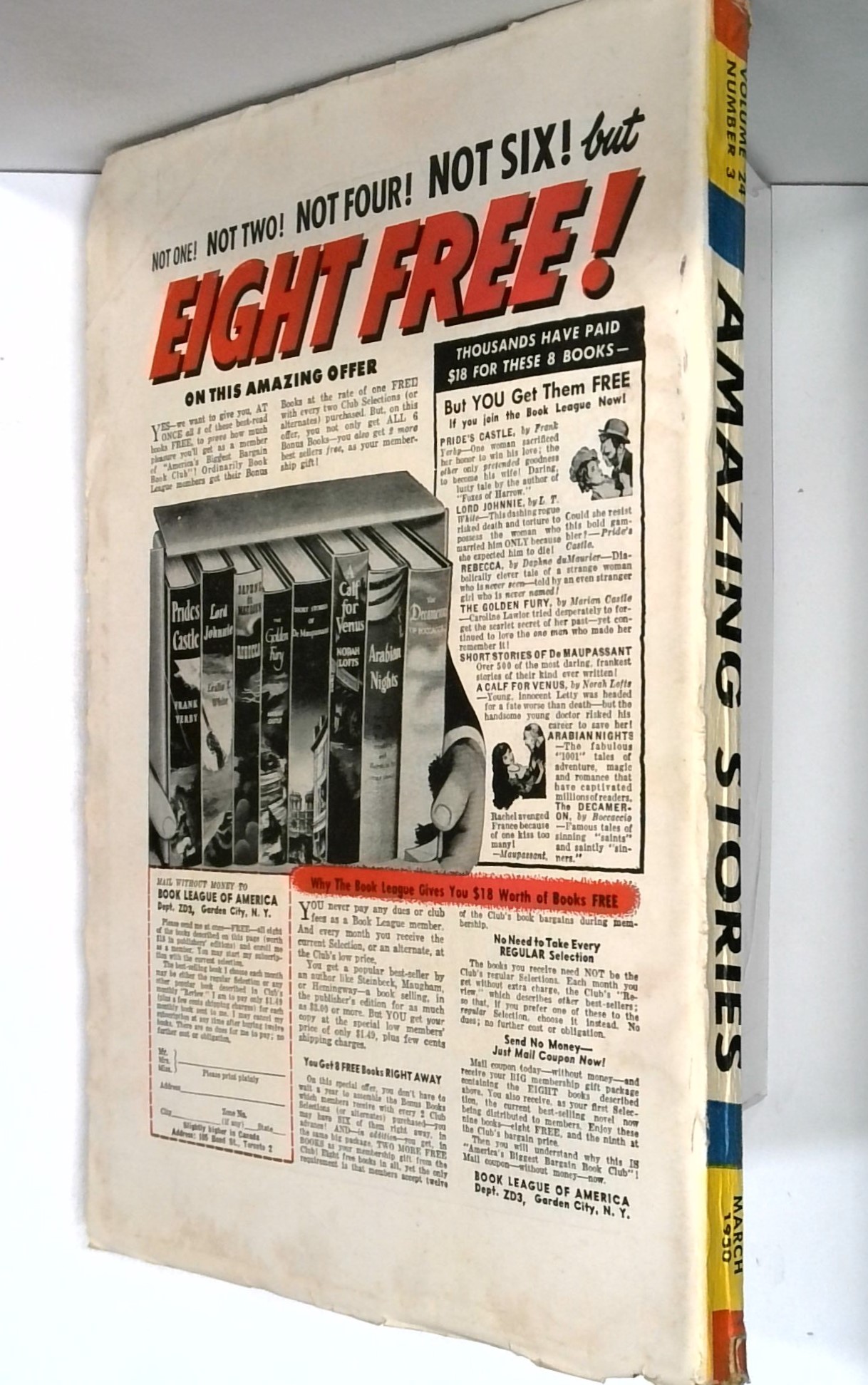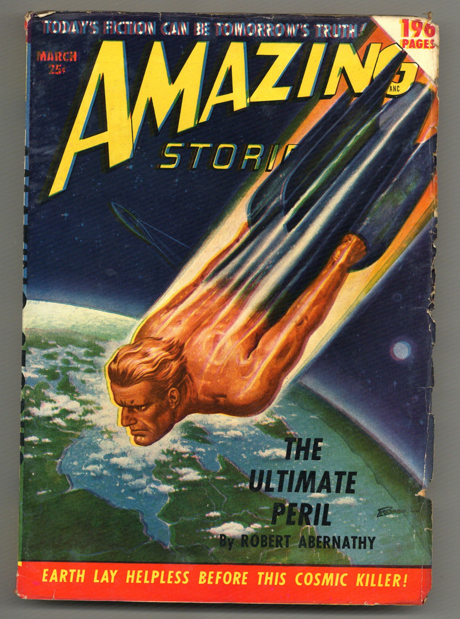 Volume 24, Issue 3 - March, 1950. Cover by Robert Gibson Jones. Science fiction stories by Robert Abernathy "The Ultimate Peril", H.B. Hickey, E.K. Jarvis, William F. Temple, Ward Moore, and Craig Browning. Illustrations by Leo Ramon Summers, Edmond Swiatek, Rod Ruth, and Julian S. Krupa. 7-in. x 10-in.; black and white; 196 newsprint pages. Cover price $0.25.