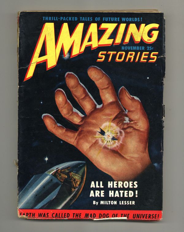 Volume 24, Issue 11 - November, 1950. Cover by Robert Gibson Jones. Science fiction stories by Robert Moore Williams, Mack Reynolds, Alexander Blade, Milton Lesser, S.M. Tenneshaw, Gerald Vance, and Leslie A. Croutch. Illustrations by J. Allen St. John, Robert Gibson Jones, Julian S. Krupa, Leo Ramon Summers, Enoch Sharp, and Edmond Swiatek. 7-in. x 10-in.; black and white; 166 newsprint pages. Cover price $0.25.