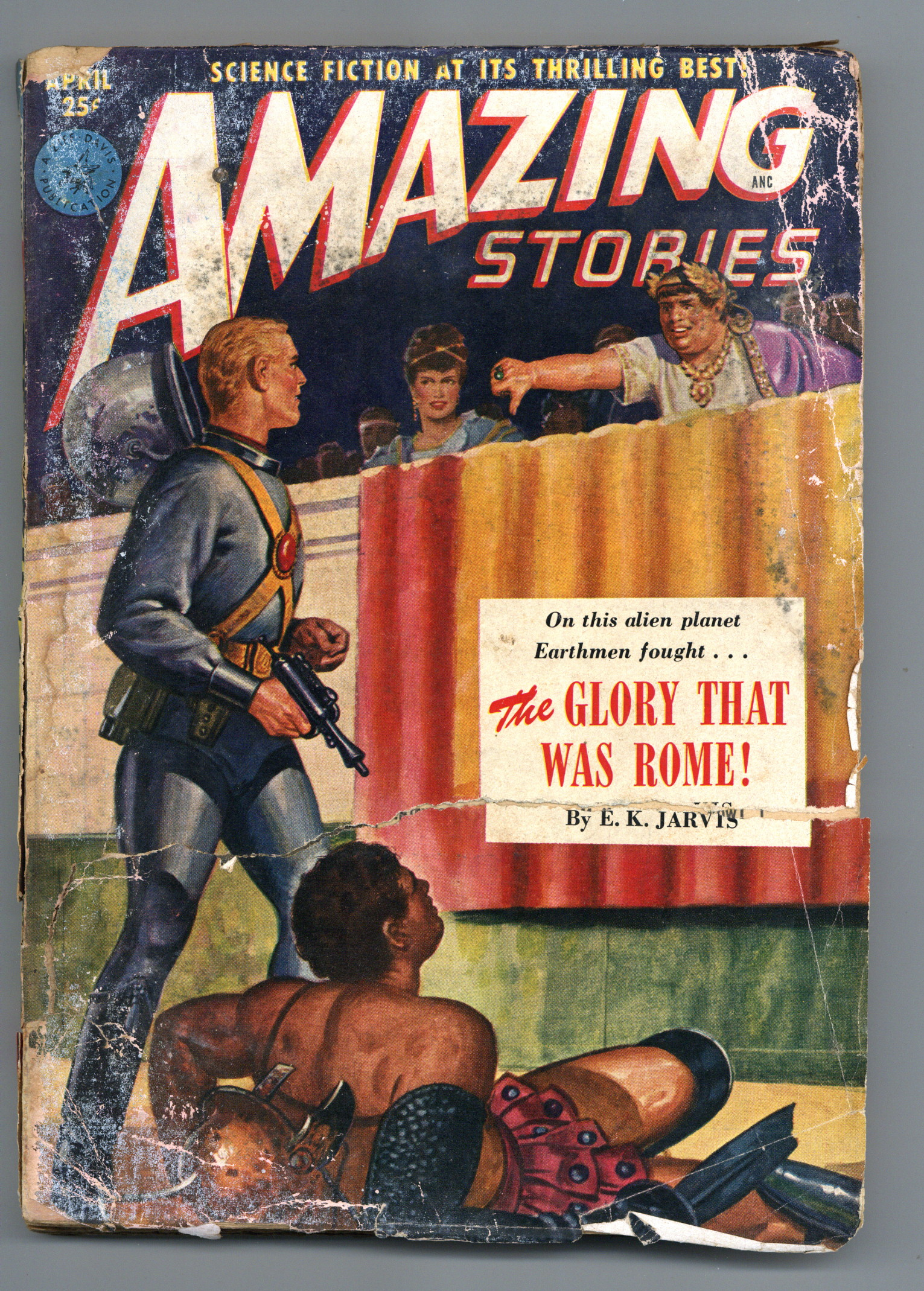 Volume 25, Issue 4 - April, 1951. Cover by Robert Gibson Jones. Science fiction stories by Isaac Asimov, Robert Moore Williams, E.K. Jarvis, Clee Garson, Kendall Foster Crossen, Charles Creighton, and H.B. Hickey. Illustrations by Ogden Whitney, Enoch Sharp, James Settles, Henry Sharp, and Edmond B. Swiatek. 7-in. x 10-in.; black and white; 166 newsprint pages. Cover price $0.25.