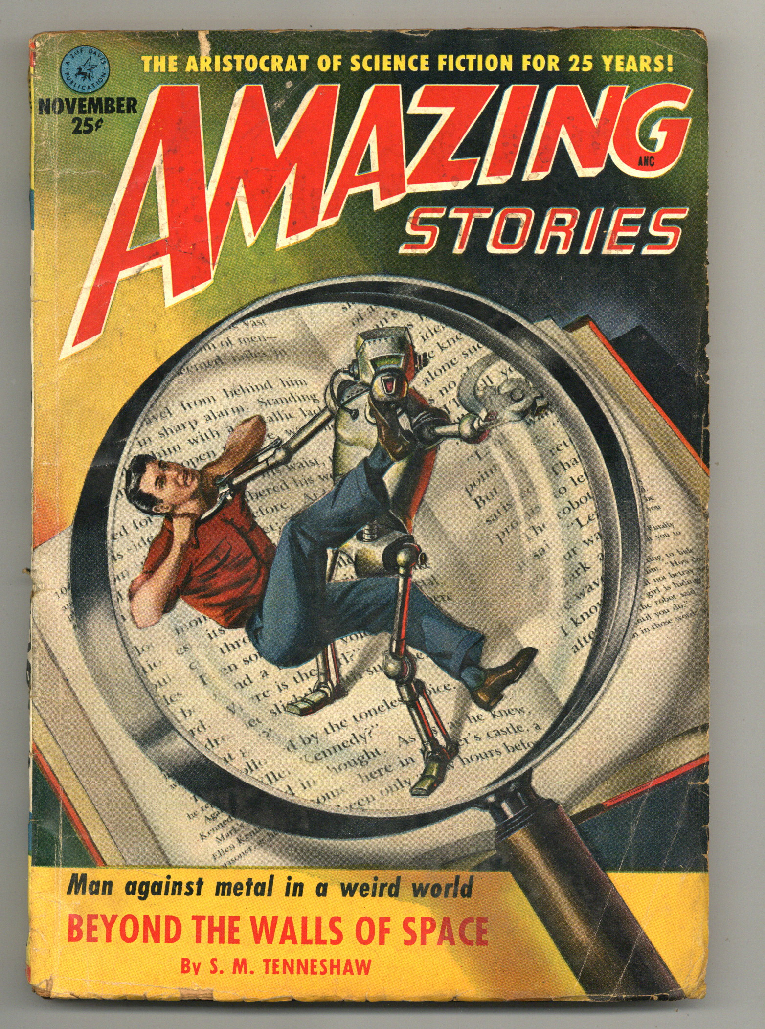 Volume 25, Issue 11 - November, 1951. Cover by Ed Swiatek and Julian Krupa. Science fiction stories by S.M. Tenneshaw, Paul W. Fairman, Barry Cord, Walter M. Miller Jr., Rog Phillips, and Robert Arnette. Illustrations by Ed Valigursky, Frank Navarro, Dean Bershad, Tom Beecham, H.W. Kiemle, and Henry Sharp. 7-in. x 10-in.; black and white; 164 newsprint pages. Cover price $0.25.