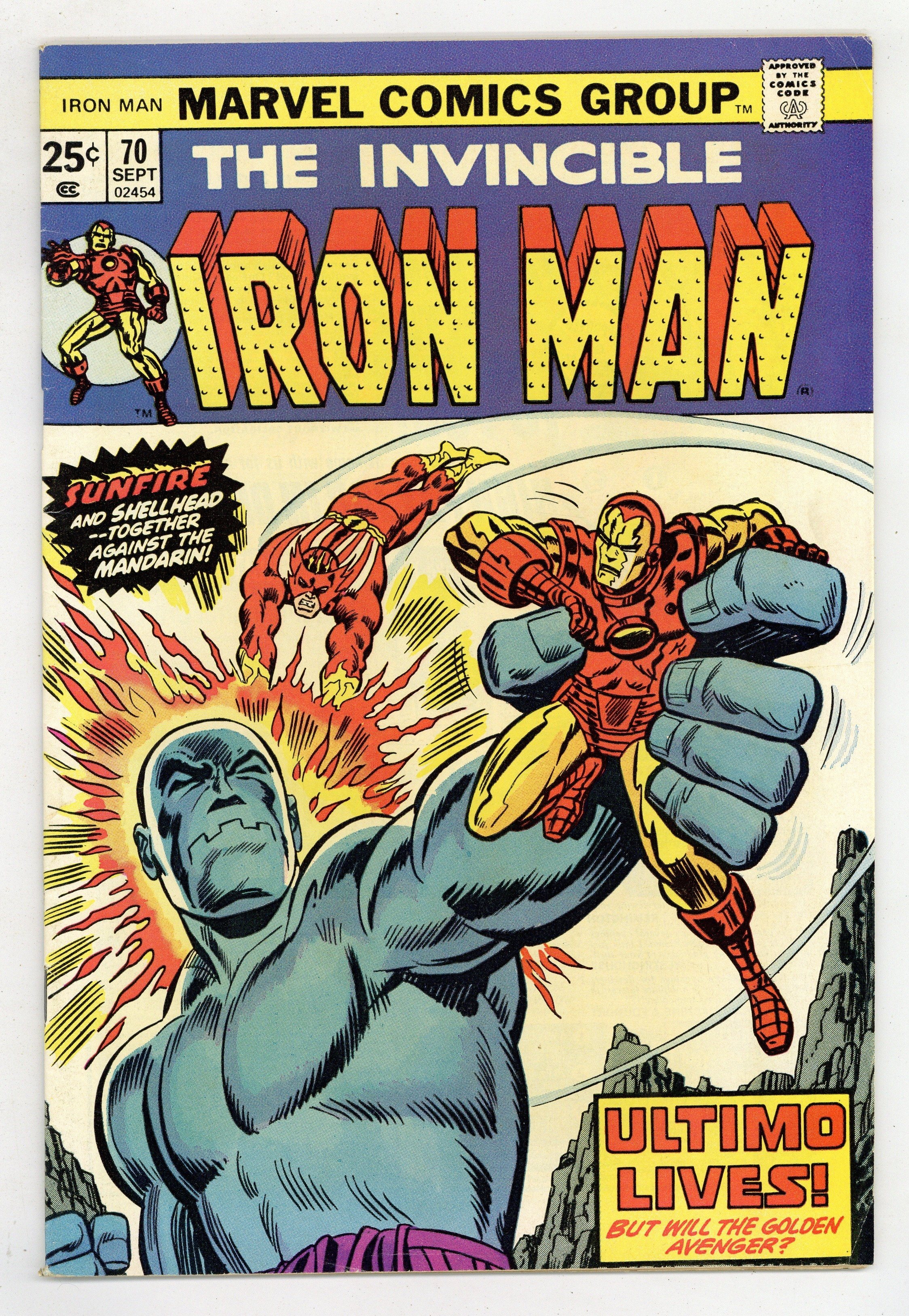 Tags: Mark Jeweler Edition$16.00Mark Jewelers Insert Variant. Sunfire, Ultimo guest. "Who Shall Stop...Ultimo?" Guest-starring Sunfire. Story by Mike Friedrich. Art by George Tuska and Mike Esposito. Iron Man and Sunfire team up to fight Ultimo, while the Mandarin and the Yellow Claw battle to the death! Who will be the winners? Also, the Yellow Claw reveals that a mysterious mystic called the Black Lama is trying to setup the ?War of the Super-Villains.' (Note: The letters page contains Marvel Value Stamp series A #2 the Hulk by Herb Trimpe.) 32 pages Cover price $0.25.