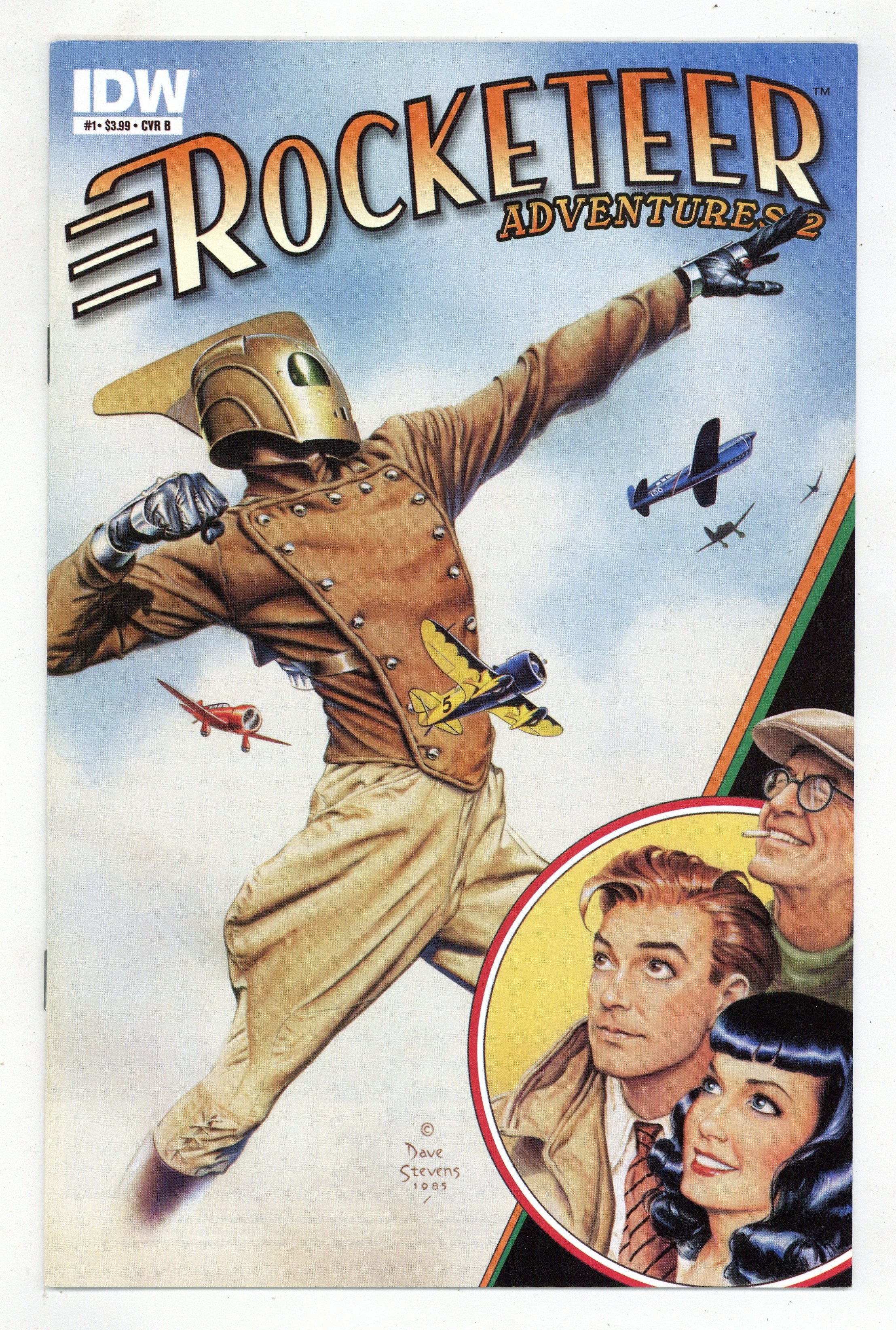 Published Mar 2012 by IDW Publishing.$35.00Cover B by Dave Stevens. (W) Marc Guggenheim, Peter David, Stan Sakai. (A) Sandy Plunkett, Bill Sienkiewicz, Stan Sakai. (CA) Darwyn Cooke, Dave Stevens. The second volume of Dave Stevens' Rocketeer blasts off with an all-new selection of great stories by some of the best in the biz! This issue starts off with a bang as Cliff finds himself in a dogfight, followed by a screening of everyone's favorite cartoon character, and ending on a high-note with a lovely and somewhat familiar story-plus a gorgeous pin-up by Arthur Adams! That's 25-count 'em, TWO FIVE-pages of topnotch comics! Cover price $3.99.