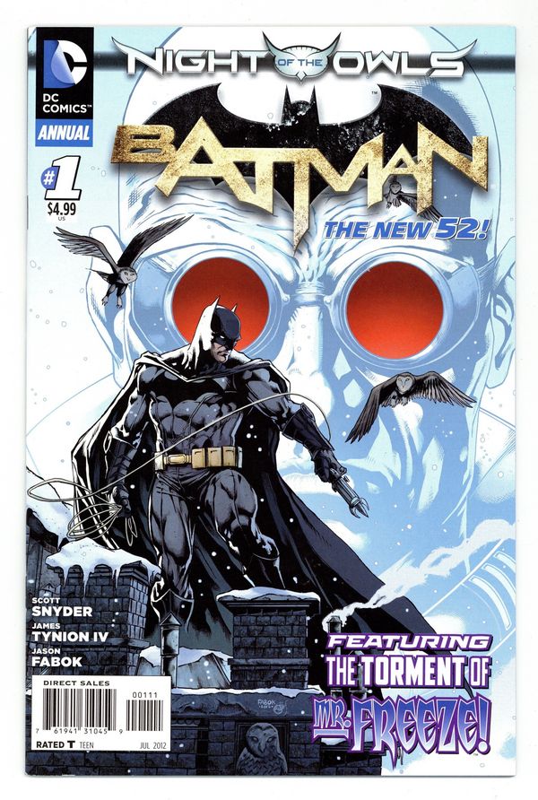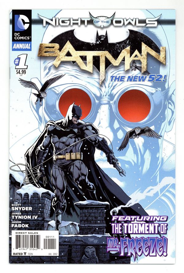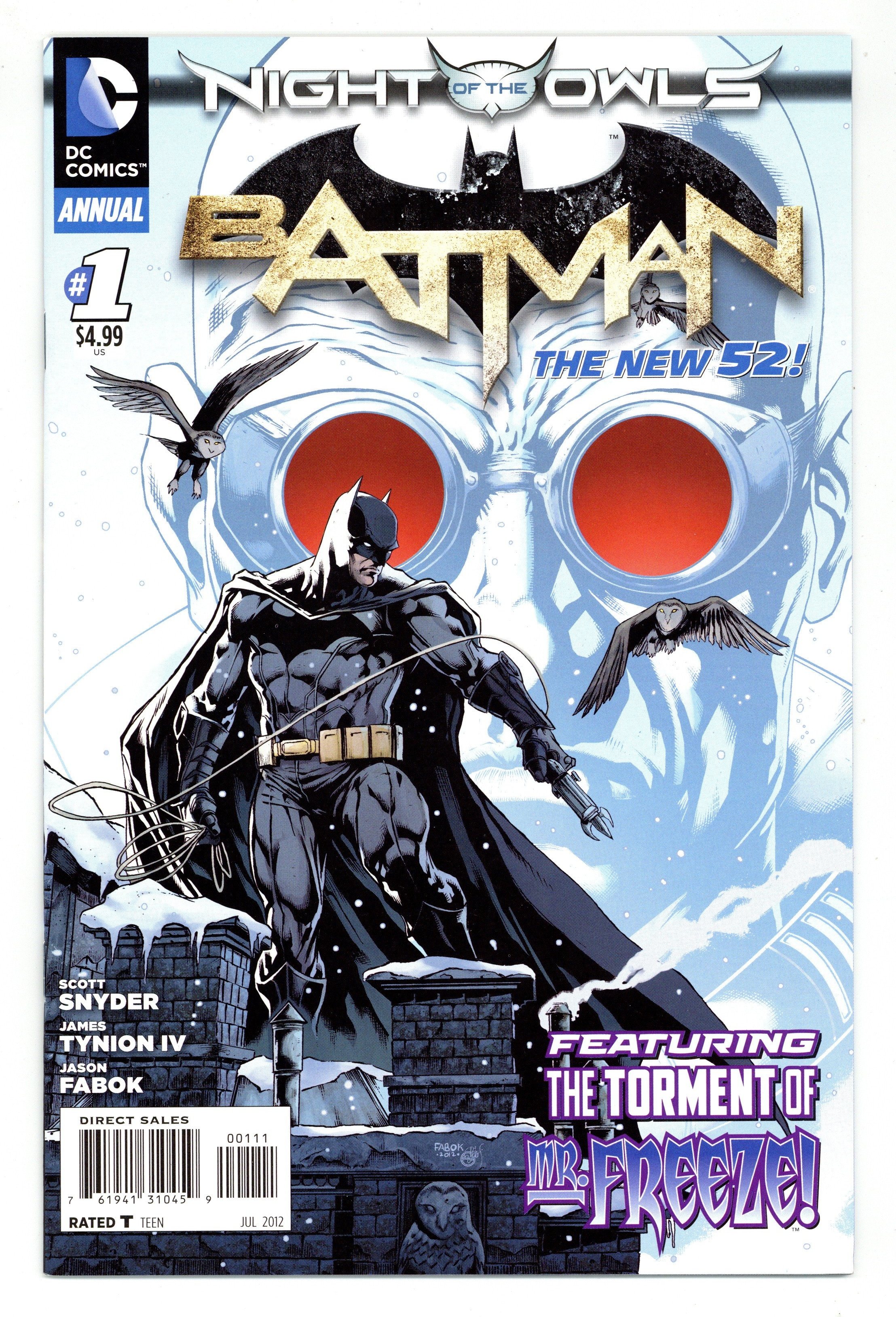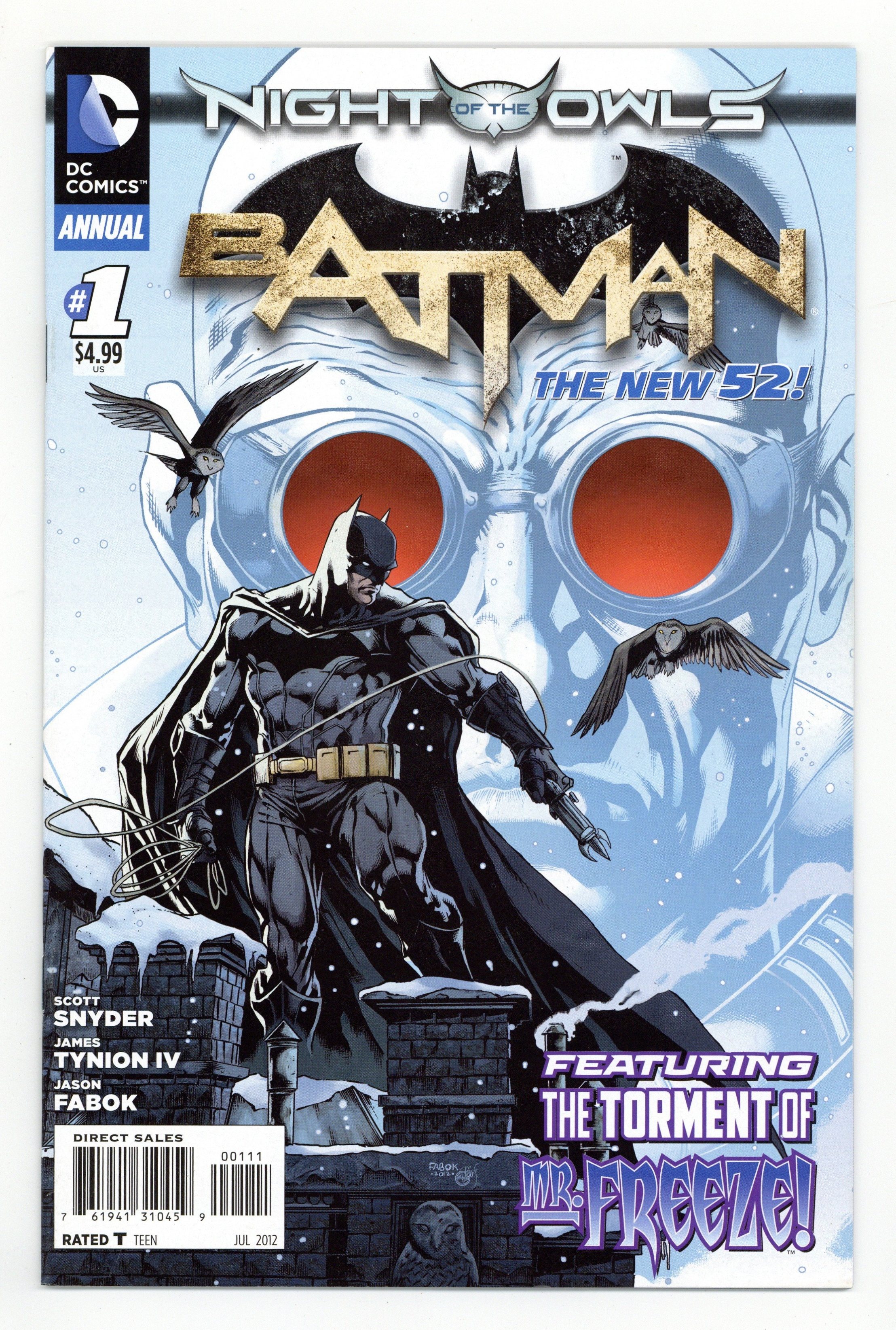$18.75Night of the Owls Tie-in - (W) Scott Snyder, James Tynion IV. (A/CA) Jason Fabok. MR. FREEZE is introduced to The New 52! What is Mr. Freeze's relationship to the COURT OF OWLS? Is he an ally - or do they want him dead? 'NIGHT OF THE OWLS' continues here! Cover price $4.99.