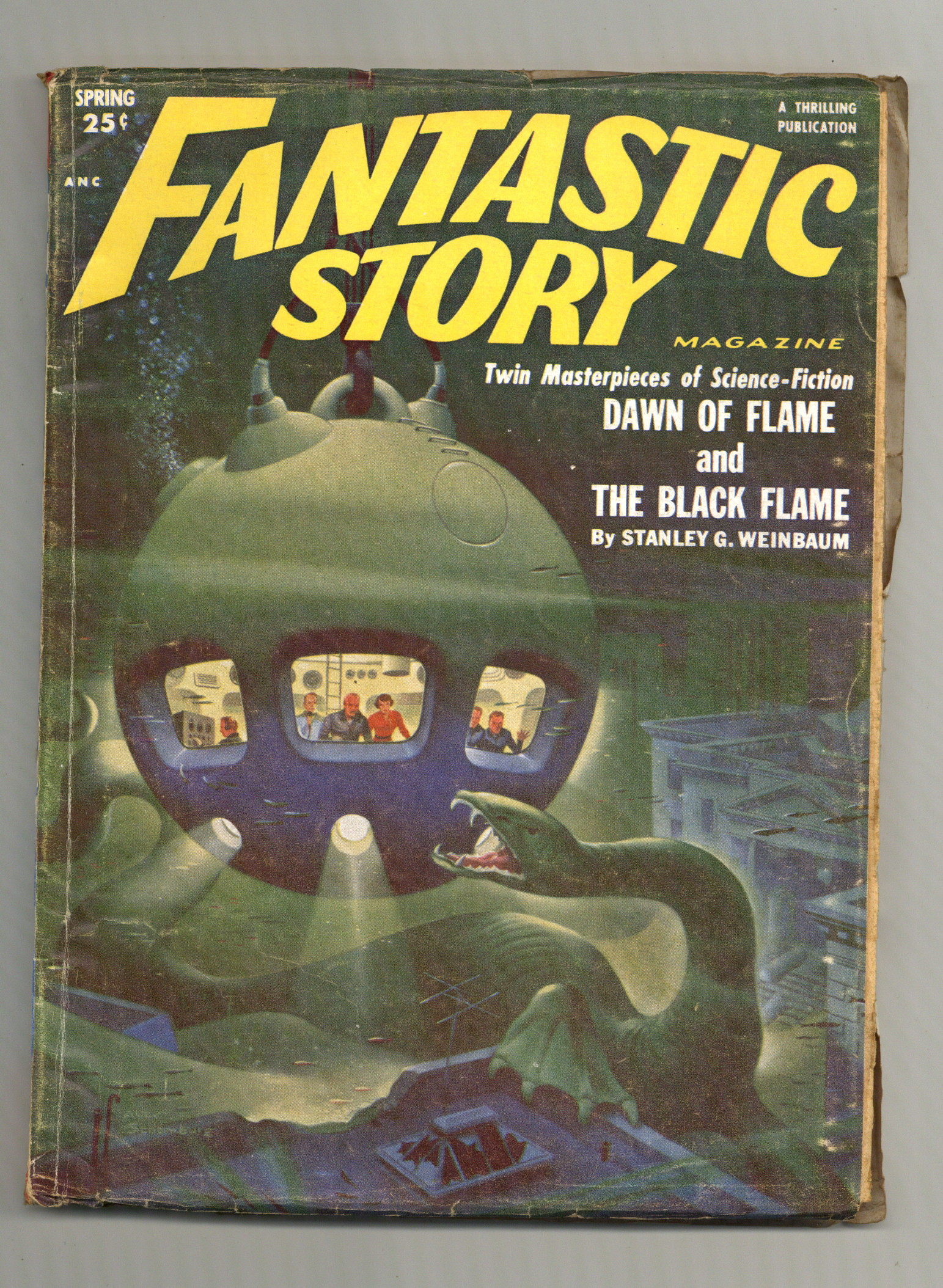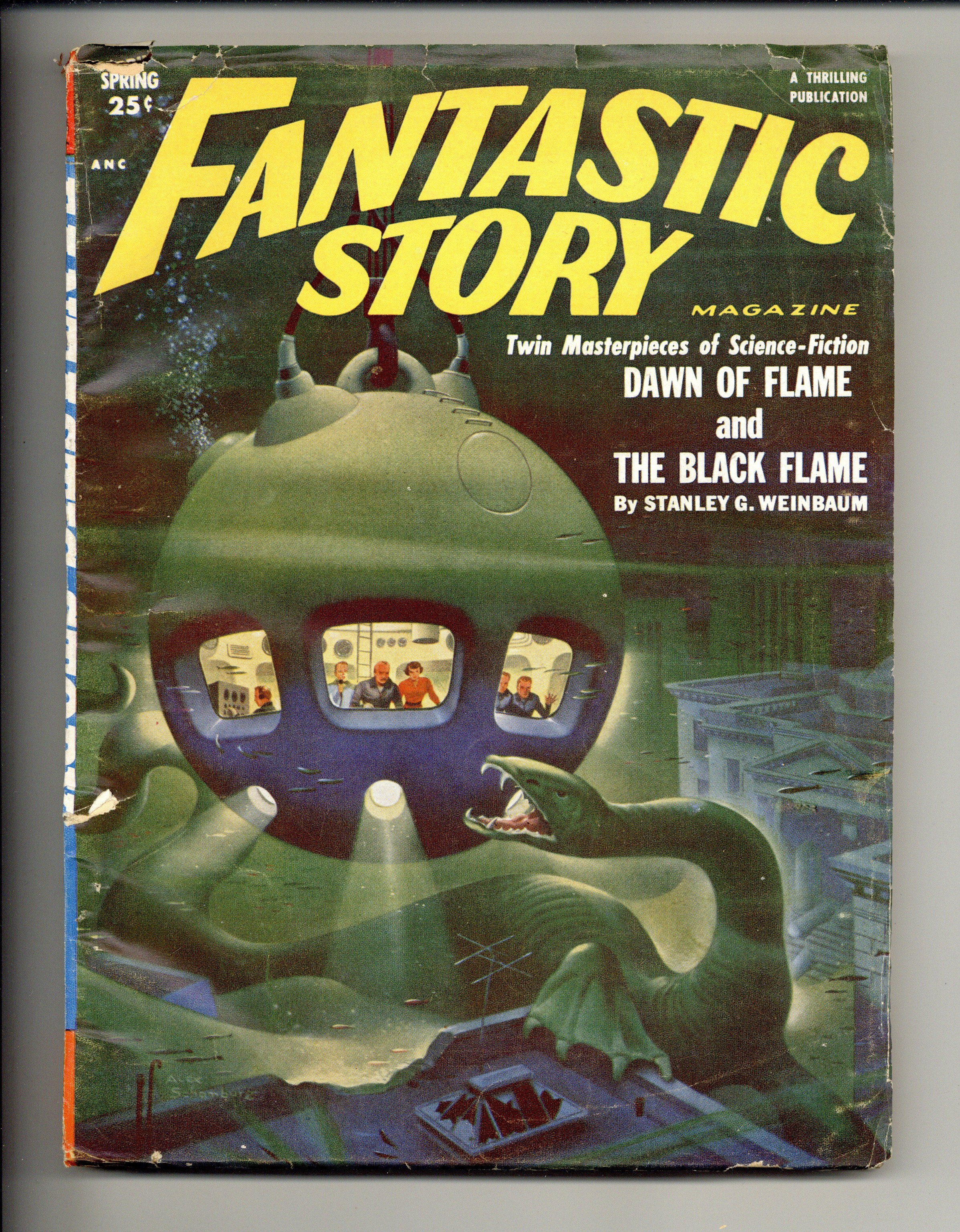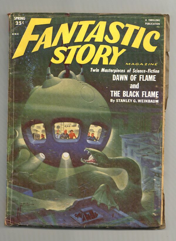 Volume 3, Issue 3 - Spring, 1952. Alex Schomburg Cover. Two stories by Stanley G. Weinbaum ("Dawn of Flame" and "The Black Flame"), plus stories by J.W. Groves, Sam Merwin Jr., Laurence Manning. 7-in. x 9.75-in.; black and white; 148 pages. Cover price $0.25.