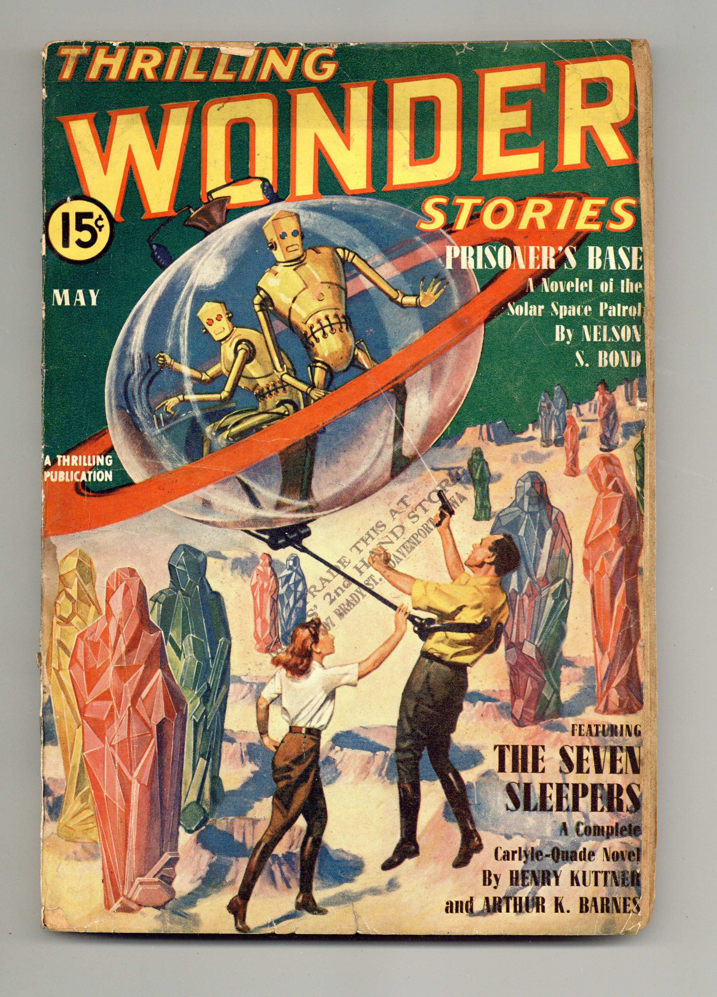 Volume 16, Issue 2 - May, 1940. Cover by Howard V. Brown. Stories by Nelson S. Bond, Henry Kuttner and Arthur K. Barnes, Edmond Hamilton, Eando Binder, Don Tracy, Paul Chadwick, and Bill Brudy. Scientifacts column by Mort Weisinger. Alex Schomburg illustrations. 7-in. x 10-in.; black and white; 130 newsprint pages. Cover price $0.15.