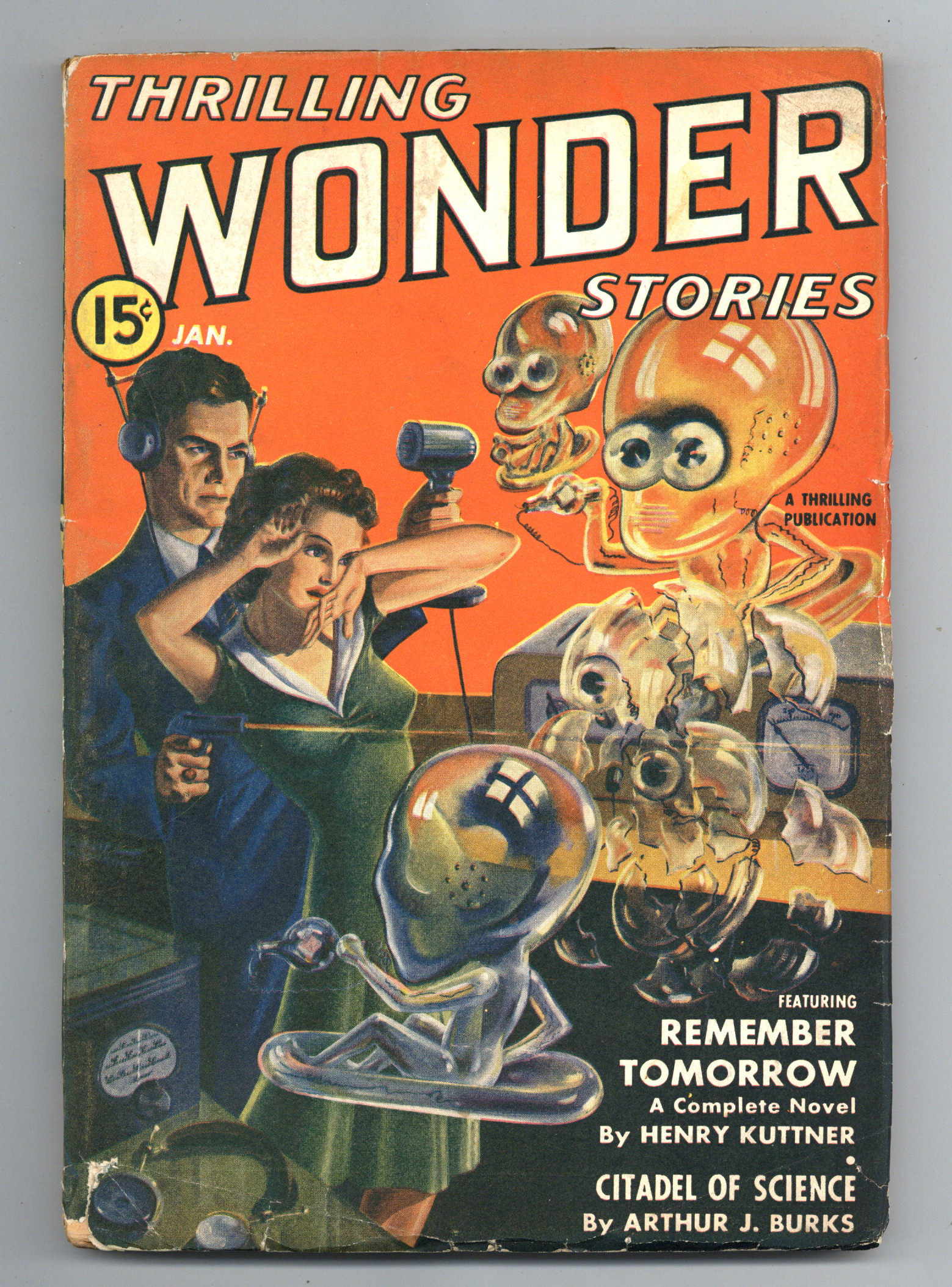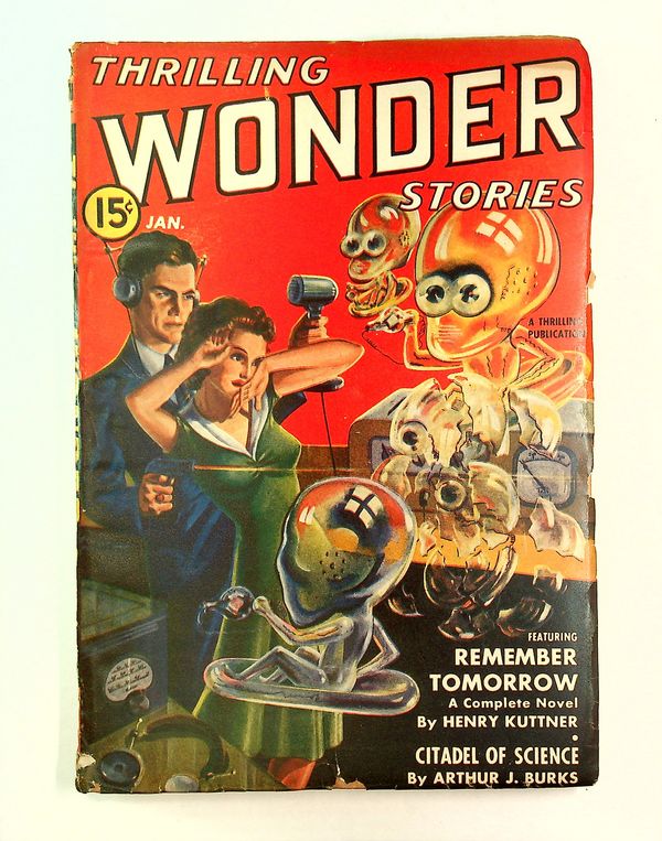 Volume 19, Issue 1 - January, 1941. Cover by Gabriel Mayorga. Stories by Henry Kuttner, Arthur J. Burks, Raymond Z. Gallun, Alfred Bester, Kelvin Kent, Otis Adelbert Kline, Joseph J. Millard, and Frederick Engelhardt. Scientifacts column by Mort Weisinger. 7-in. x 10-in.; black and white; 130 newsprint pages. Cover price $0.15.
