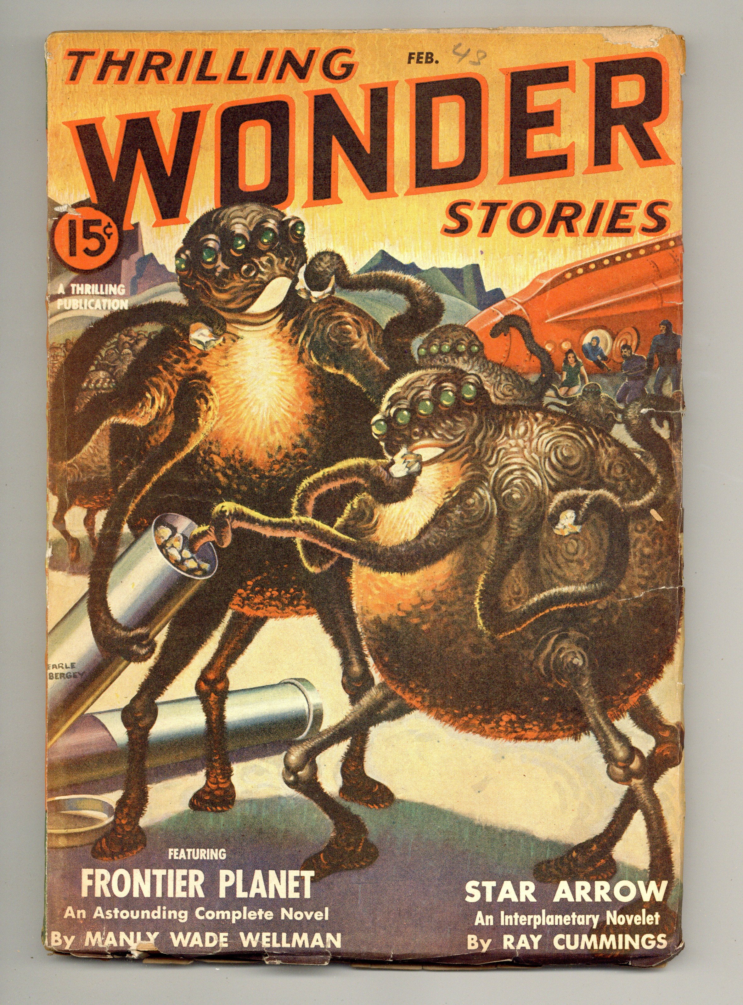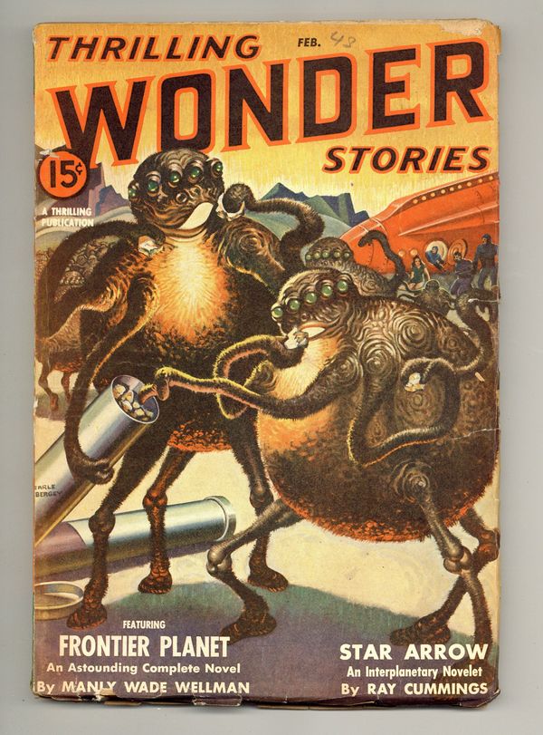 Feb 1943. Cover by Earle K. Bergey. Stories by Manly Wade Wellman, Ray Cummings, Kelvon Kent, N.J. Westwood, Ray Bradbury, and Robert Arthur. 7-in. x 10-in.; black and white; 128 newsprint pages. Cover price $0.15.