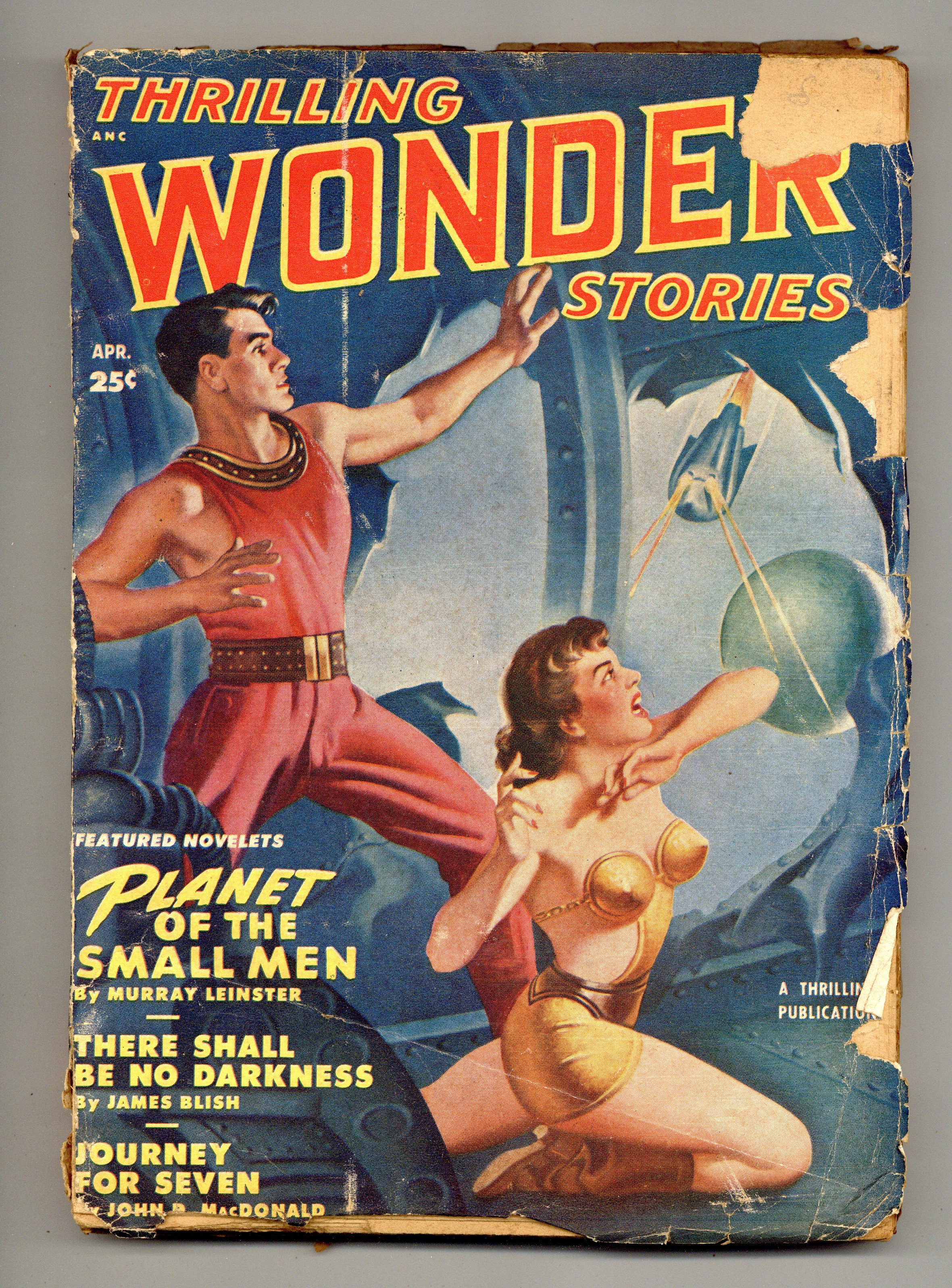 Volume 36, Issue 1 - April, 1950. Stories by Murray Leinster, James Blish, John D. MacDonald, Ray Bradbury, Wallace West, Cleve Cartmill, Walt Sheldon, and Carter Sprague. One Virgil Finlay illustration. 7-in. x 10-in.; black and white; 164 newsprint pages. Cover price $0.25.