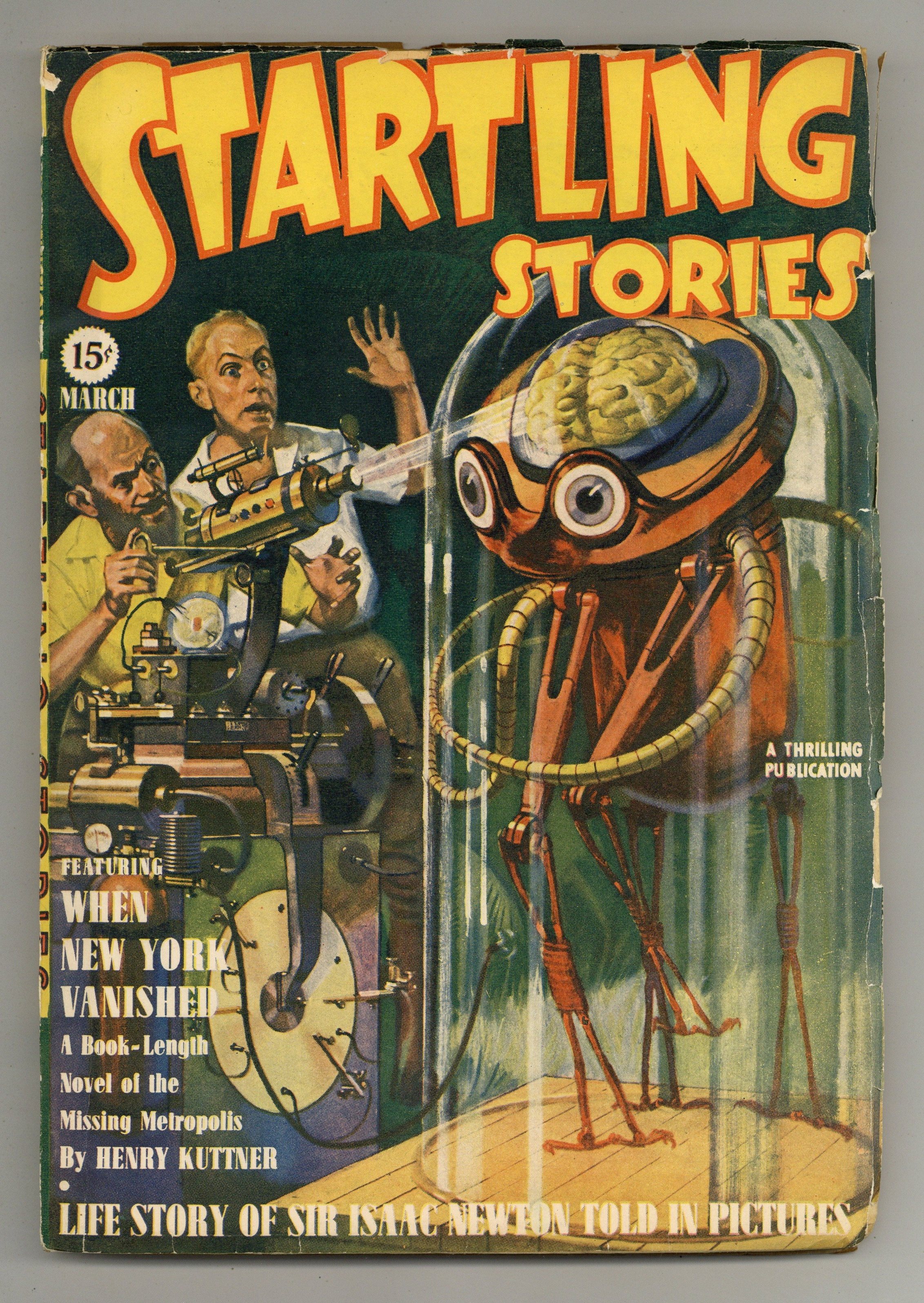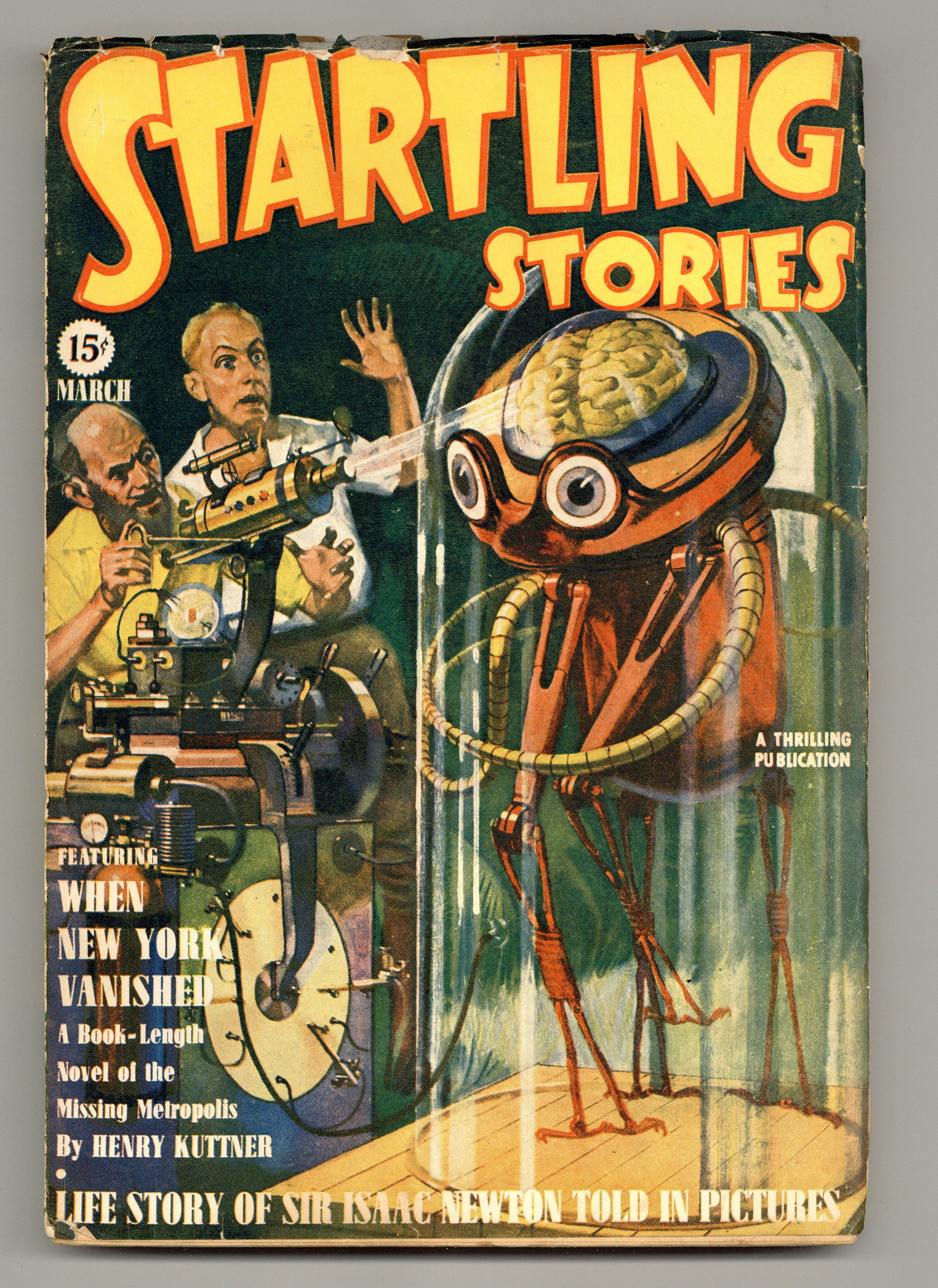 Vol. 3, No. 2 - March 1940. Stories by Henry Kuttner, Bob Olsen, Oscar J. Friend, and Alfred Bester. "Thrills in Science" column by Mort Weisinger. Two-page Sir Isaac Newton bio in comic form. Alex Schomburg illustrations. 6.75-in. x 9.75-in.; black and white; 128 pages. Cover price $0.15.