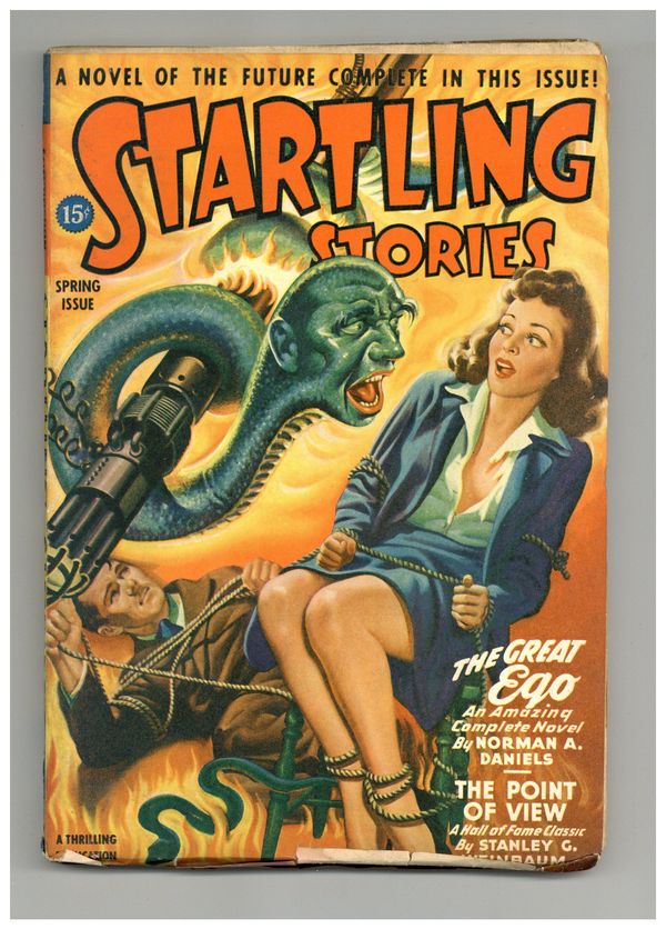 Volume 10, Issue 3 - Spring, 1944. Cover by Earle K. Bergey. Stories by Norman A. Daniels, Stanley G. Weinbaum, Carl Jacobi, Frank Balknap Long, and Joseph Farrell. Six Virgil Finlay illustrations. Dr. Seuss illustration (small "Buy United States War Savings Bonds & Stamps" ad). 6.75-in. x 9.75-in.; black and white; 132 pages. Cover price $0.15.