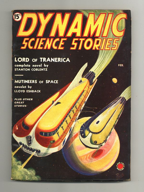 Volume 1, Issue 1 - February, 1939. Cover by Frank R. Paul, depicting a scene from Stanton Coblentz's novel "The Lord of Tranerica." Stories by Stanton Coblentz, Lloyd Arthur Eshbach, Robert Moore Williams, Nelson S. Bond and Hubert Mavity. A complete gripping novel: "The Lord of Tranerica" by Stanton Coblentz - Because Hannibal Spratt, inhuman dictator of Tranerica, wanted lovely Celia Stanwick, his exploding time-machine made a space-devouring Catalyst of the Fourth Dimension, and sucked Celia out of 1938 into the mad mechanical hell of 2439! Plus two great long science novelettes: "Mutineers of Space" by Lloyd Arthur Eshbach - Doomed by an Interplanetary racketeer to slave their lives away for the rejuvenating sulphur crystals of Jupiter, what chance had those frail Terrestrials to escape the monstrous Jovians and blast their way 550,000,000 miles to Mercury and revenge! "Quest of Zipantoric" by Robert Moore Williams - Within that amazing bubble of flame was a beautiful girl, her hand holding a scepter symbol of Zipantoric -- her gesture condemning Dick Markle and Dr. Burstone to the terrible wrath of a Mayan fire god's incredible scientific devices! And two super-science short stories: "The Mercurian Menace" by Nelson S. Bond - What fiendish creatures of flame lived on that macabre terrain which was the dark side of Mercury? Aided by the bouncing-ball humans of the hot side, Buzz Carson plunged too late into the chill anti-hell necromancy of that inexplicable land to join a lovely girl in a destiny of disintegration! "The Message from the Void" by Hubert Mavity - Mutual misunderstanding between Mars and Earth -- because of two factors in the abstract beyond their comprehension! Plus science departments The Test Tube and Through the Telescope. 7-in. x 10-in., 114 pages, B&W. Cover price $0.15.