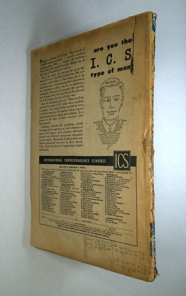 Published Oct 1944 by Better Publications.$10.00- Front cover detached 25%. No Back Cover. Water damage: Moderate. Staple rust: Moderate.
