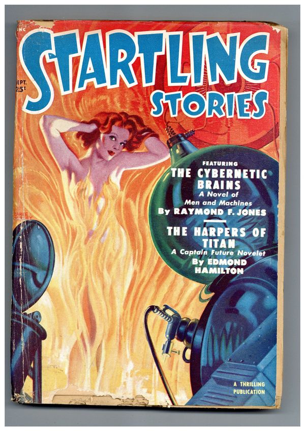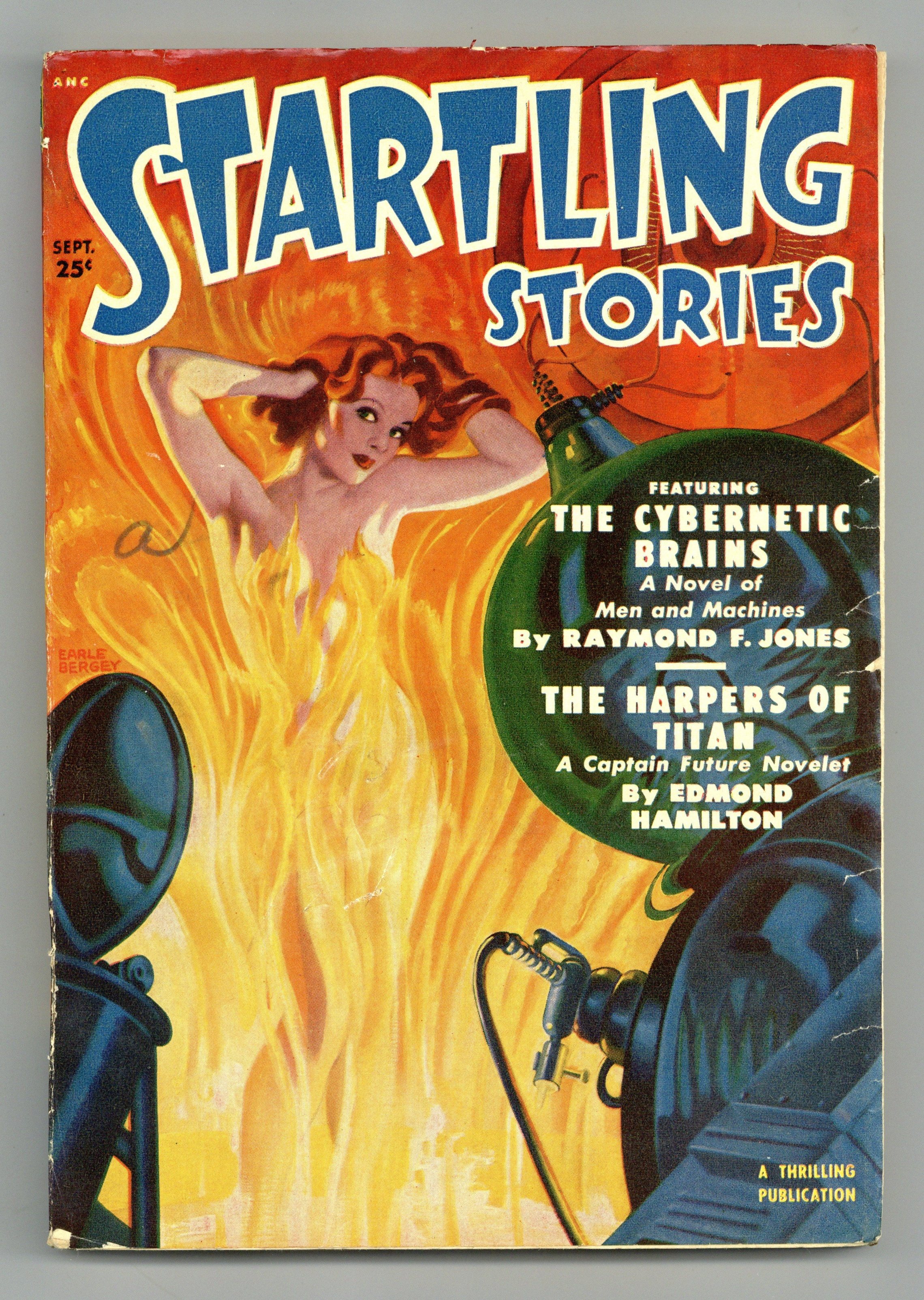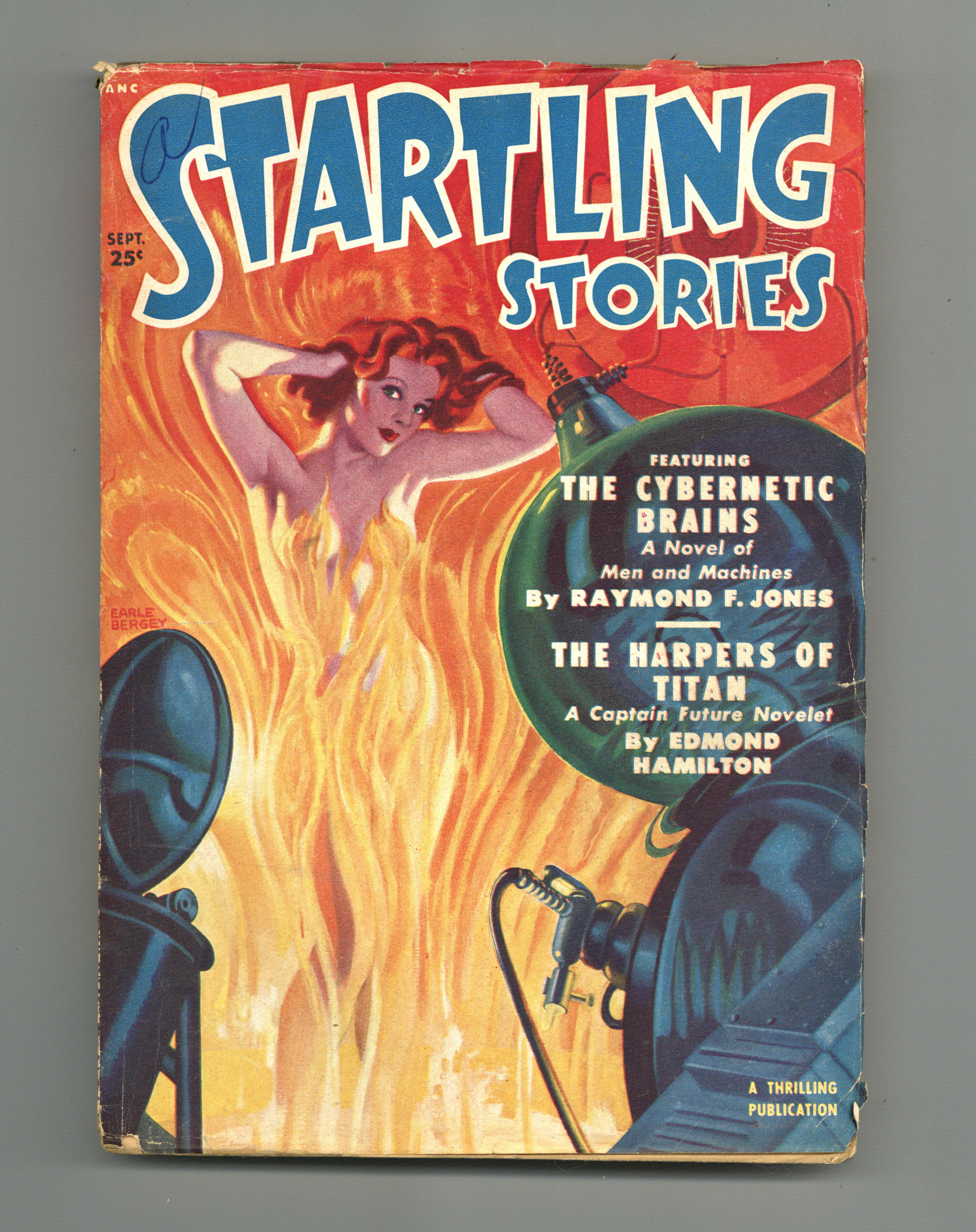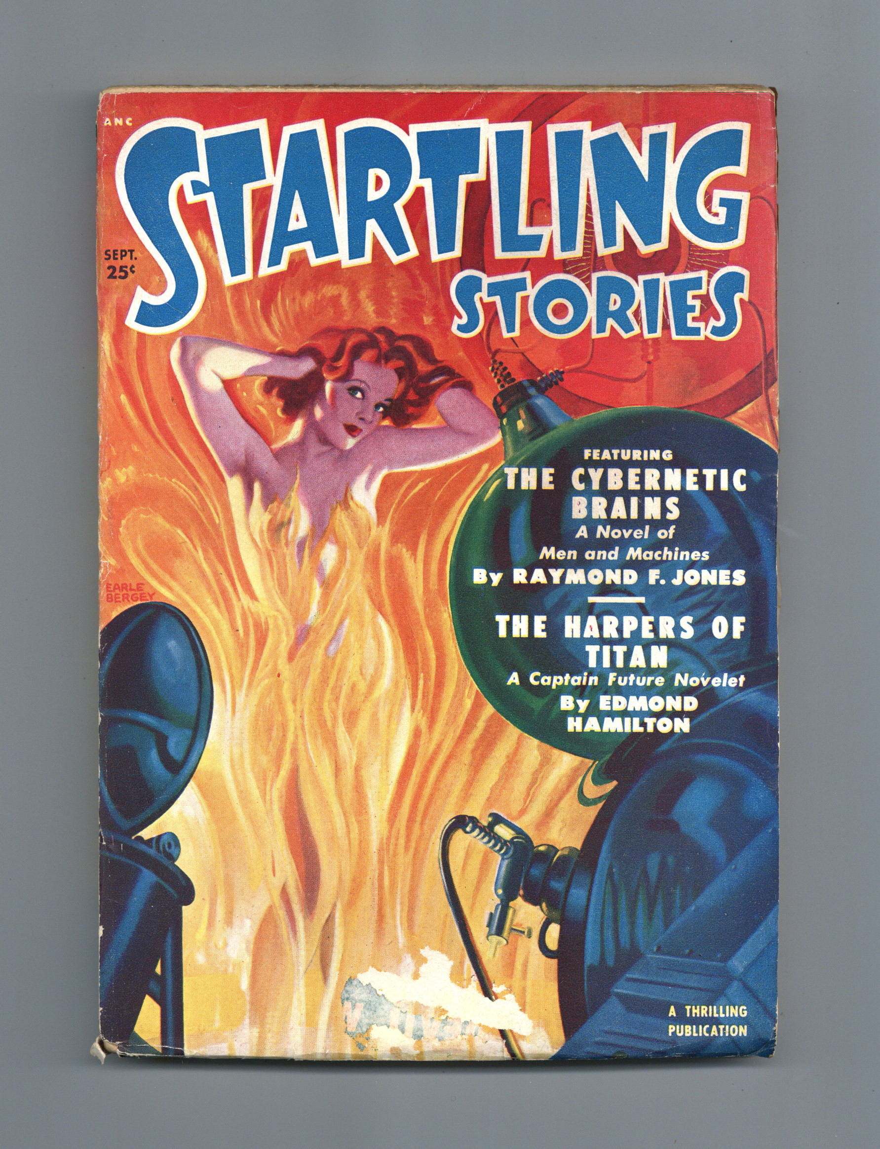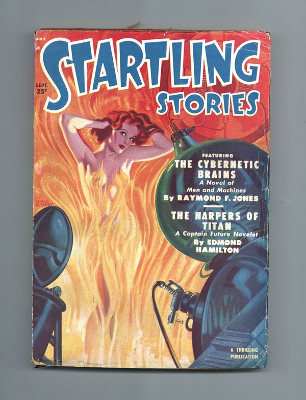 Volume 22, Issue 1 - September, 1950. Cover by Earle K. Bergey. Stories by Raymond F. Jones, Edmond Hamilton (Captain Future story "The Harpers of Titan"), Arthur K. Barnes and Henry Kuttner, Jack Vance, Mack Reynolds, and Matt Lee. Virgil Finlay illustration. 6.75-in. x 9.75-in.; black and white; 166 pages. Cover price $0.25.
