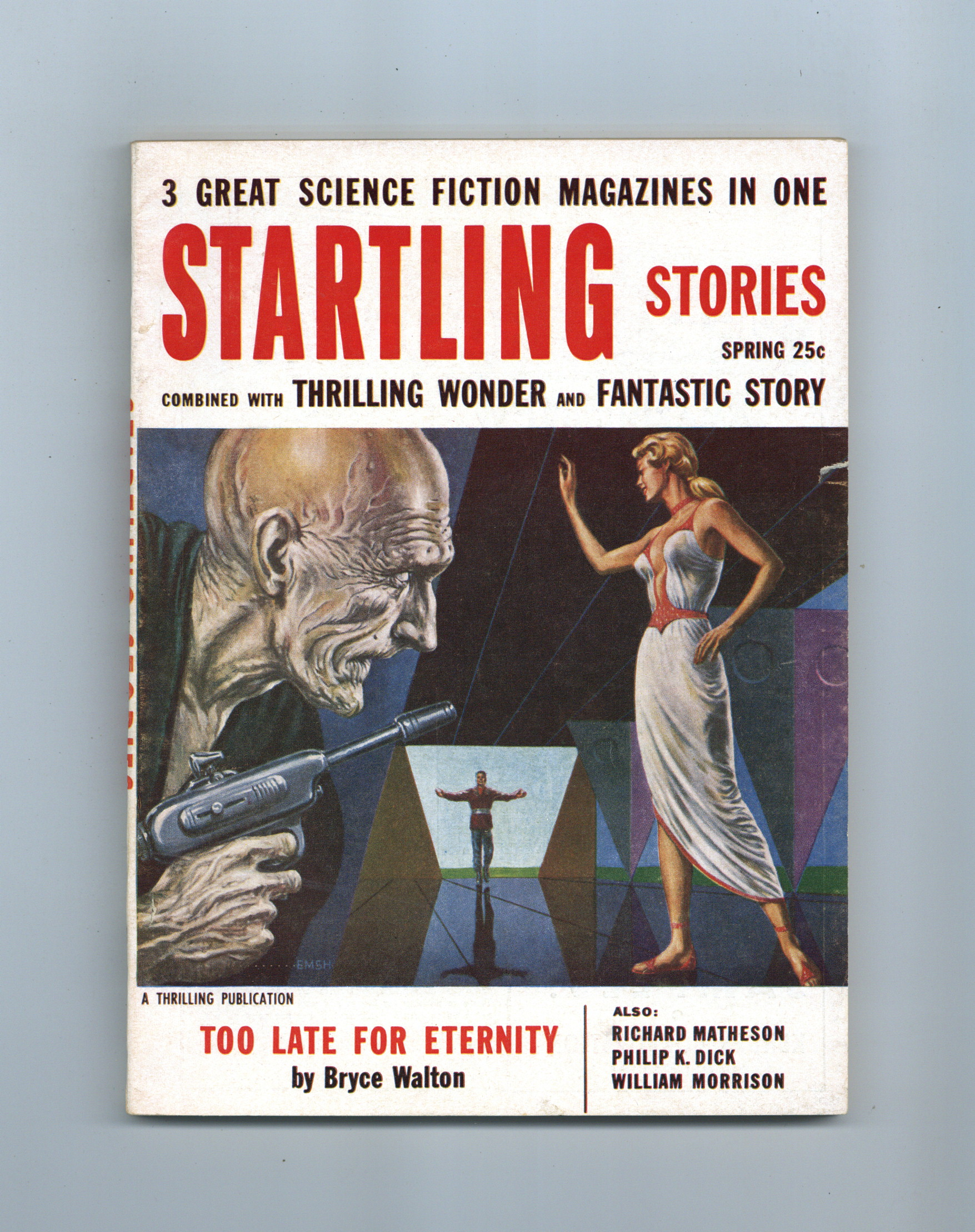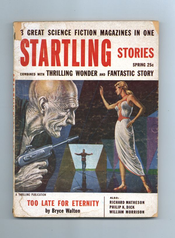 Spring 1955. Cover by Ed Emshwiller. Stories: "Too Late For Eternity" by Bryce Walton, "Dark Destiny" by William Morrison, "Double Date" by Winston Marks, "Nanny" by Philip K. Dick, "Wayfarer" by Roger Dee, "Miss Stardust" by Richard Matheson, and "The Box" by Arthur Porges. " Illustrations by Frank Kelly Freas and Emsh. Softcover Pulp, 6 1/2-in x 9-in, 118 Pages, B&W. Cover price $0.25.