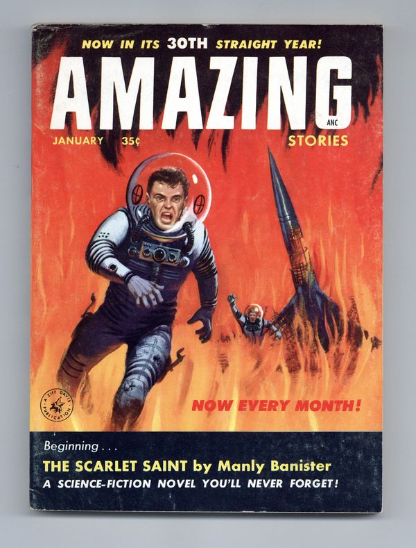 Published Jan 1956 by Experimenter Publications.$16.75Jan 1951. Science fiction stories by Robert Silverberg, Manly Banister, Theodore Mathieson, Ivar JHorgensen, and C.H. Thames. Illustrations by Virgil Finlay (2) and Carmine Infantino. Cover by Edward Valigursky. 5-1/2 in. x 7-1/2 in.; black and white; 128 newsprint pages. Cover price $0.35.