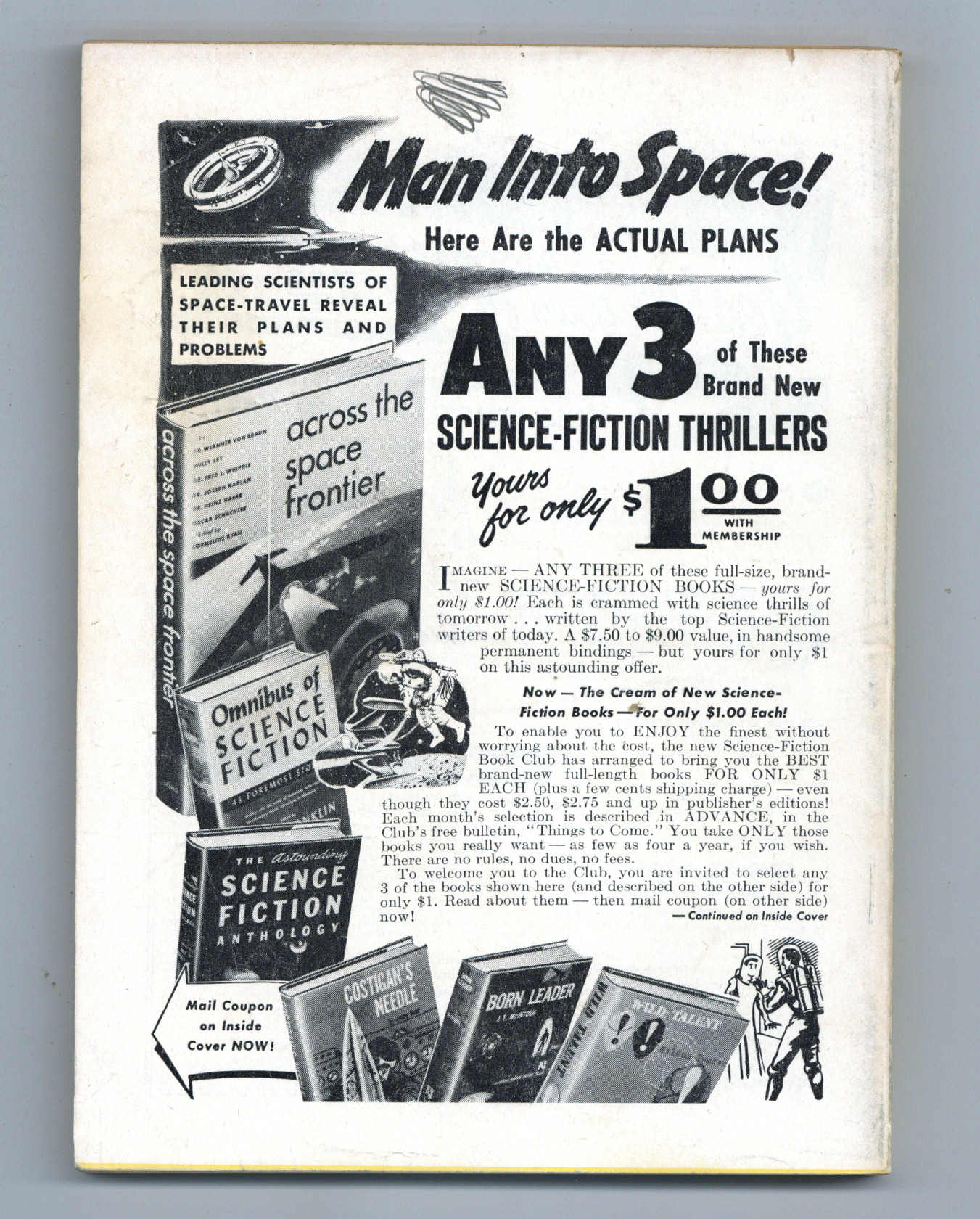 Published May 1954 by Street & Smith.$67.001st printing. Volume 53, Issue 3 - May, 1954. Cover by van Dongen. Stories by James Blish, J.T. M'Intosh, Eric Frank Russell, Chad Oliver, Morton Klass and Algis Budrys. Illustrations by Freas and van Dongen. Novelettes: "At Death's End" by James Blish and "Bias" by J.T. M'Intosh. Short stories: "Weak Spot" by Eric Frank Russell; "Of Course" by Chad Oliver; "Earthman's Burden" by Morton Klass; and "First to Serve" by Algis Budrys. Articles: "Tornadoes and Atom Blasts" by J.O. Hutton and "Orthodoxy in Science" by L. Sprague de Camp. Readers' departments: The Editor's Page; In Times to Come; The Analytical Laboratory; The Reference Library by P. Schuyler Miller; and Brass Tacks. Softcover, 5 1/2-in. x 8-in., 168 newsprint pages, B&W. Cover price $0.35.