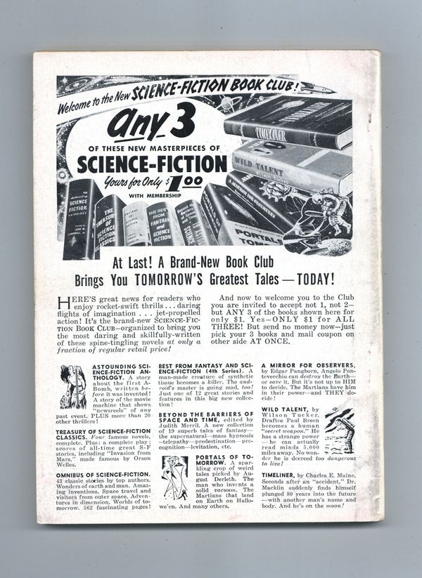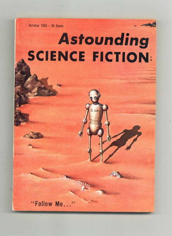 Published Oct 1955 by Street & Smith.$12.50Oct 1955. Volume 56, Issue 2 - 1st printing. Science fiction stories by Eric Frank Russell ("Call Him Dead" conclusion), Francis Donovan, James E. Gunn, and Ernest M. Kenyon. Illustrations by Freas and Rogers. Article on highway hypnosis. Cover by Ed Emshwiller. Softcover, 5.5-in. x 7.75-in.; 160 newsprint pages, B&W. Cover price $0.35.