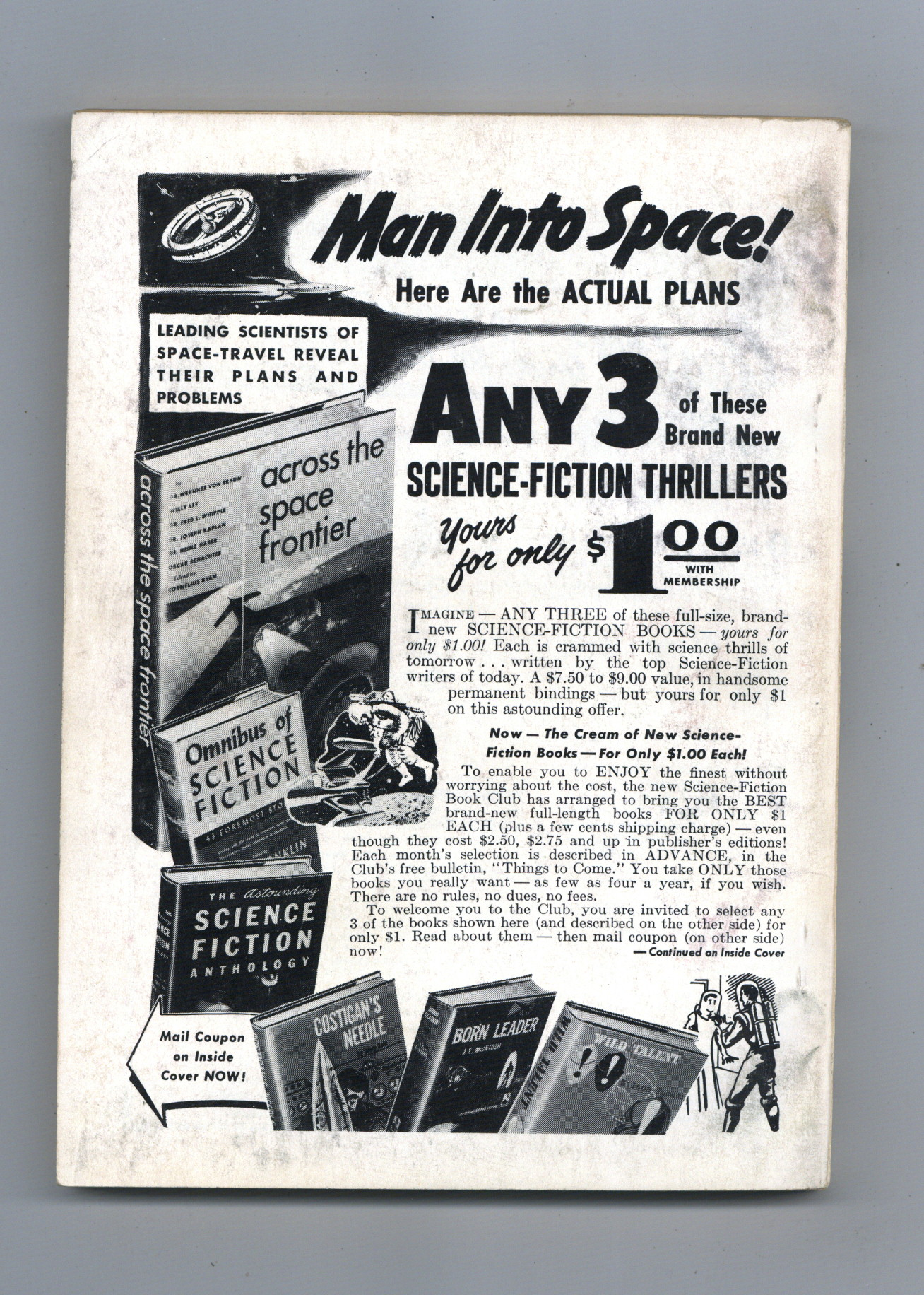 Published Oct 1954 by Ziff Davis.$5.00Oct 1954. Science fiction and fantasy stories by Milton Lesser, Stan Baer, Lee Priestley, Jerome Bixby, Michael Fischer, and Gerald Vance. Cover by Ernie Barth. 5.5-in. x 7.75-in.; black and white; 128 newsprint pages. Cover price $0.35.