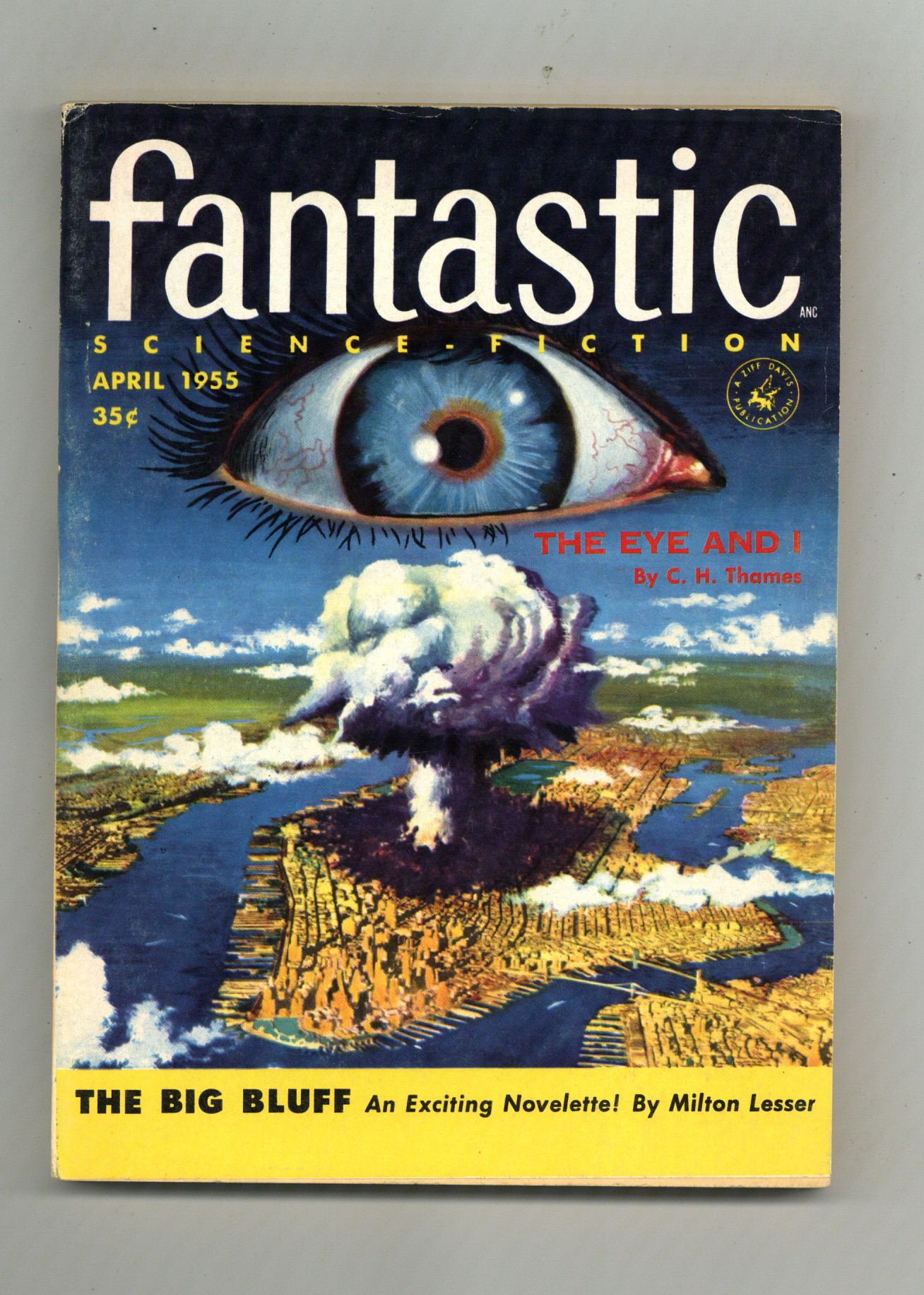 Published Apr 1955 by Ziff Davis.$16.00April 1955. Science fiction and fantasy stories by C.H. Thames, Henry Still, Lawrence Chandler, Lysander Kemp, Joy Hall, Richard Wilson, and Milton Lesser. Virgil Finlay (3) and George Evans illustrations. Cover by Edward Valigursky. 5.5-in. x 7.75-in.; black and white; 132 newsprint pages. Cover price $0.35.