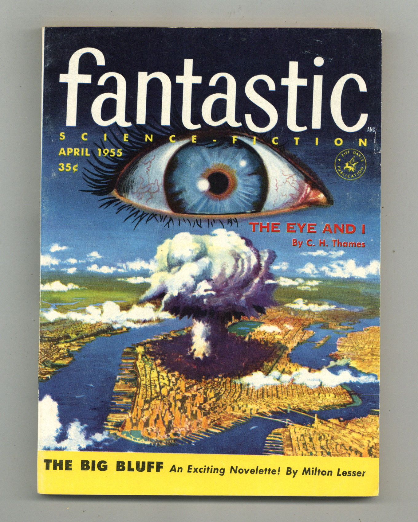 Published Apr 1955 by Ziff Davis.$10.00April 1955. Science fiction and fantasy stories by C.H. Thames, Henry Still, Lawrence Chandler, Lysander Kemp, Joy Hall, Richard Wilson, and Milton Lesser. Virgil Finlay (3) and George Evans illustrations. Cover by Edward Valigursky. 5.5-in. x 7.75-in.; black and white; 132 newsprint pages. Cover price $0.35.