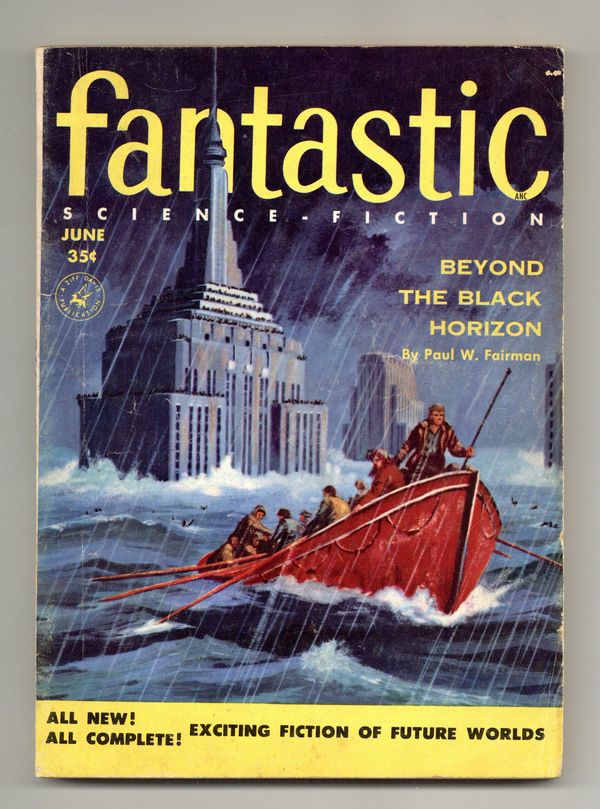 Published Jun 1955 by Ziff Davis.$10.00June 1955. Science fiction and fantasy stories by Paul W. Fairman, J.J. Allerton, Ron Butler, P.F. Costello, and C.H. Thames. George Evans illustration. Cover by Edward Valigursky. 5.5-in. x 7.75-in.; black and white; 128 newsprint pages. Cover price $0.35.