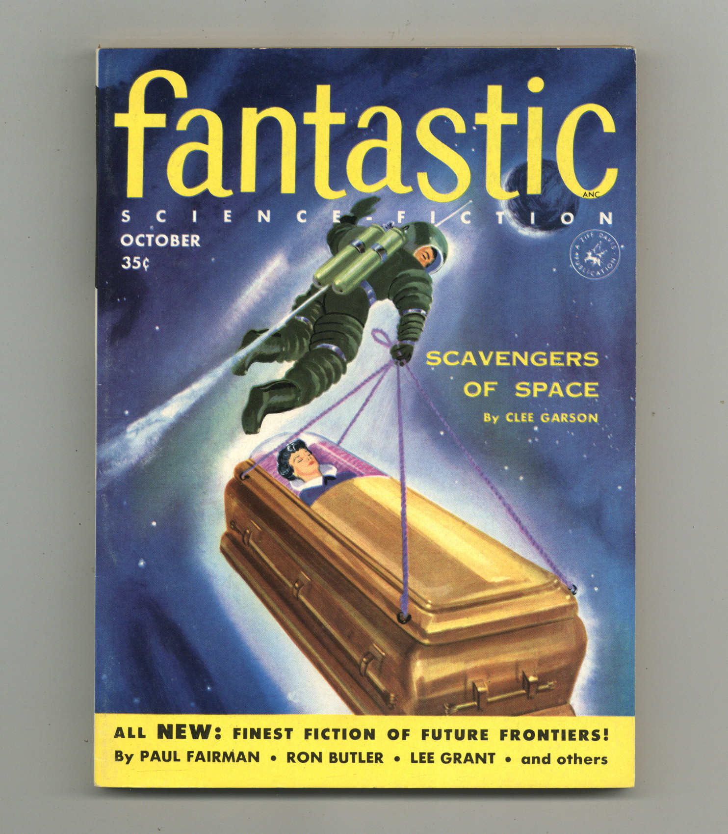 Published Oct 1955 by Ziff Davis.$22.00Oct 1955. Science fiction and fantasy stories by Clee Garson, Lee Grant, Ron Butler, Alice Eleanor Jones, and Paul W. Fairman. 5.5-in. x 7.75-in.; black and white; 128 newsprint pages. Cover price $0.35.