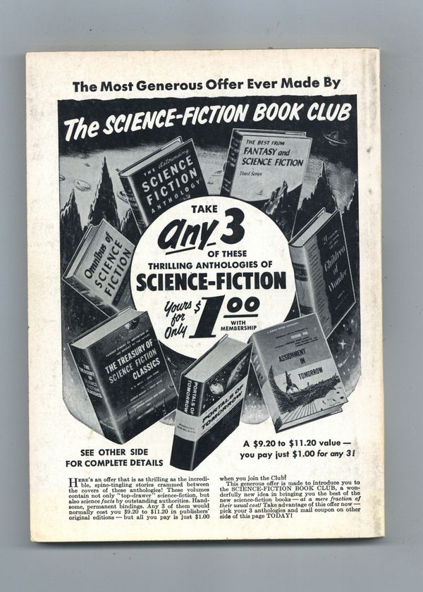 Published Dec 1955 by Ziff Davis.$12.00Dec 1955. Science fiction and fantasy stories by Paul W. Fairman, Ivar Jorgensen, John Toland, C.H. Thames, and Milton Lesser. Cover by Edward Valigursky. 5.5-in. x 7.75-in.; black and white; 128 newsprint pages. Cover price $0.35.