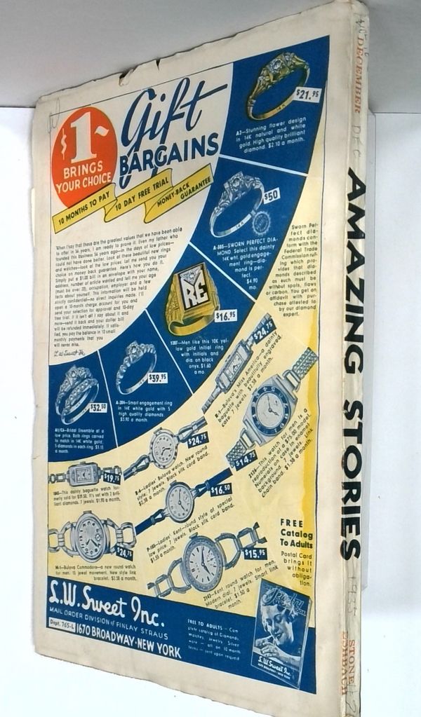 Dec 1935. Cover and illustrations by Leo Morey. Science fiction stories by L.A. Eshbach, Leslie F. Stone, A.W. Bernal, Raymond A. Palmer, and John Francis Kalland. 6.75-in. x 9.75-in.; black and white; 144 newsprint pages Cover price $0.25.